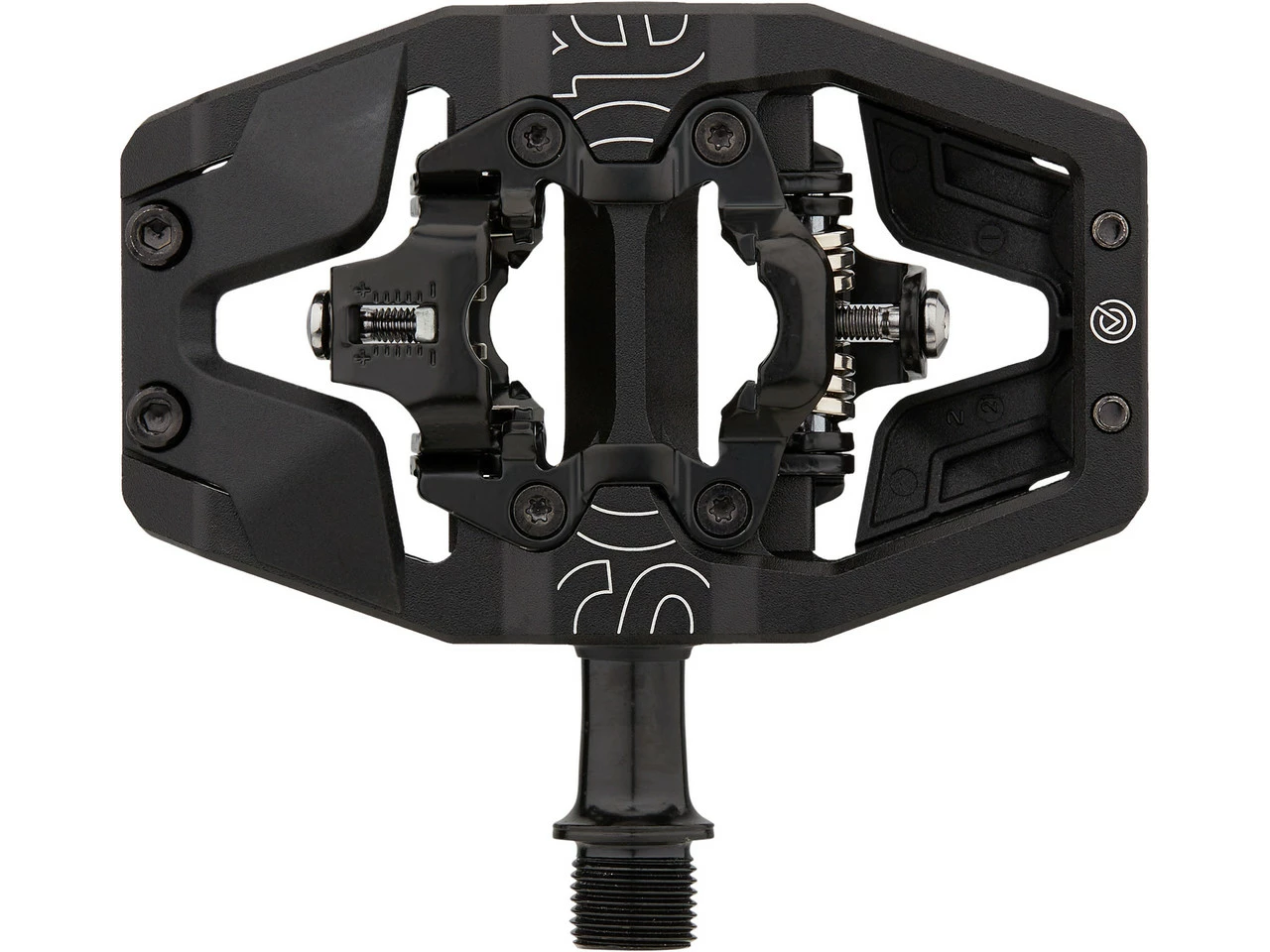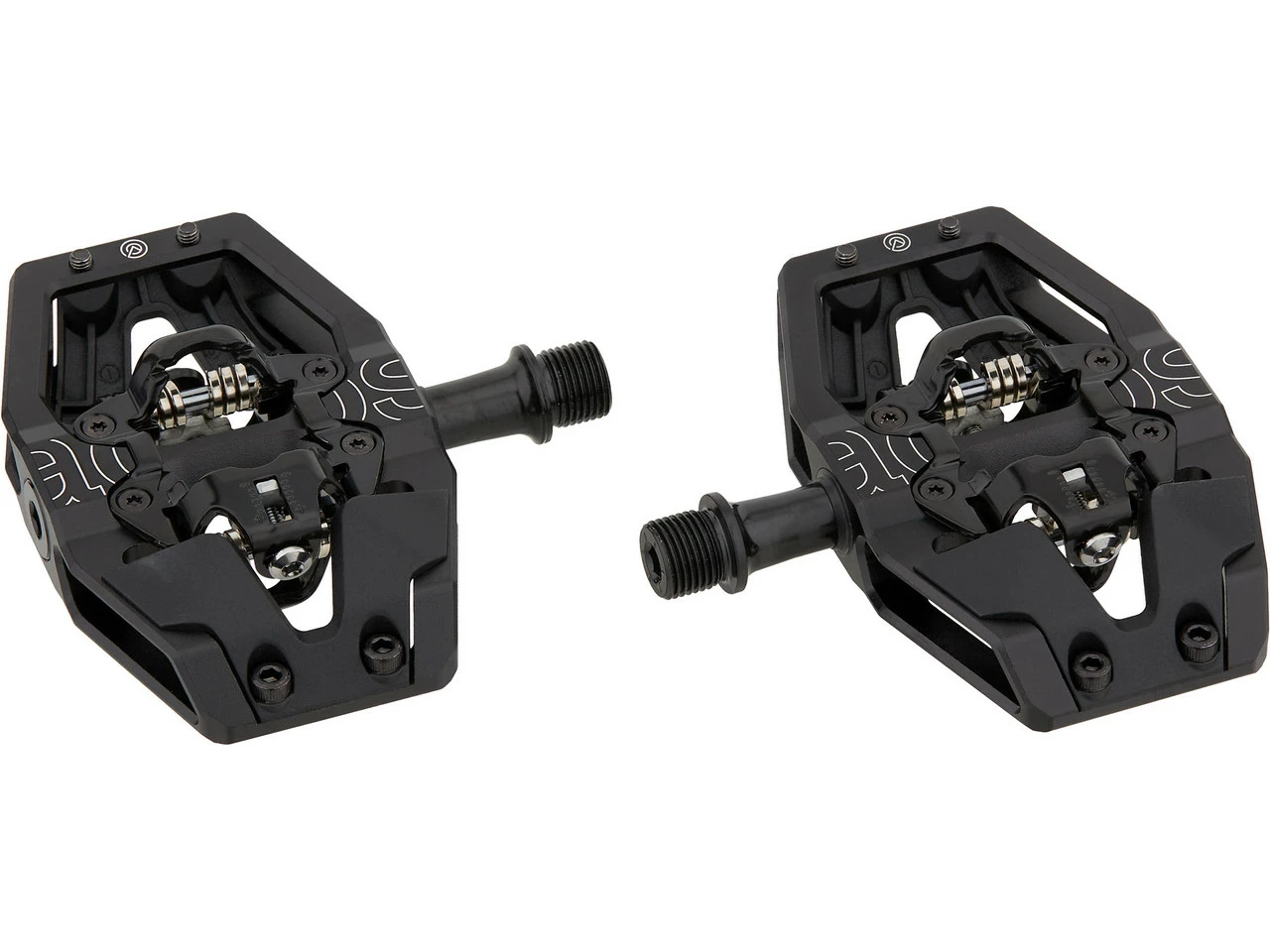 Die ersten Klickpedale von Acros überzeugen im MTB-Einsatz mit verstellbarer Cleat-Positionierung, einer einstellbaren Auslösehärte sowie einem erleichterten Einstieg durch Skidplates. Über einen eingebauten Hülsenmechanismus veränderst Du den Abstand zwischen den Cleats, den sogenannten Stance, um +/- 10 mm, je nachdem ob Du einen breiteren Stand für mehr Kontrolle oder eine engere Fußstellung für mehr Effizienz beim Bergauftreten bevorzugst. Die Klickpedale sind mit SPD-Cleats kompatibel und verfügen über je vier Edelstahlpins sowie hochwertige, gedichtete Kugel- und Gleitlager. Um Dir den Umgang mit dem Klicksystem zu erleichtern, lässt sich die Vorspannung stufenlos verändern, sodass Du beim Ausklicken je nach Wunsch weniger oder mehr Kraft aufwenden musst. Die mitgelieferten Skidplates, mit Glasfaser verstärkte Gleitplatten, erleichtern Dir den Ein- und Ausstieg, weil sie der Griffigkeit der Pins entgegenwirken. Nicht zuletzt gefällt das Acros Pedal auch durch seine schlichte Eleganz mit Schwarz-in-Schwarz-Farbgebung.