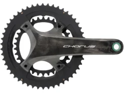 Mit der Chorus 12s Ultra Torque 12-fach Kurbelgarnitur von Campagnolo wurde nur das Beste aus Technologie und Vielseitigkeit zusammengestellt. Die Konstruktion der Kurbelarme aus unidirektional angeordneten Carbonfasern – direkt aus der Form ohne Oberflächenbeschichtung gewonnen – steht für den technischen Fortschritt. Die dadurch erzielte hohe Steifigkeit optimiert die Kraftübertragung. Es wird zudem die gleiche Innenlagerachse, wie bei der Record-Kurbelgarnitur verwendet, nämlich die Ultra-Torque aus Stahl. Die Vielseitigkeit resultiert aus dem neuen, reduzierten 123 mm Lochkreis, der eine Vielfalt an Anwendungsbereichen garantiert. Daher ist er mit 32-48-, 34-50- und 36-52-Kettenblättern kompatibel.