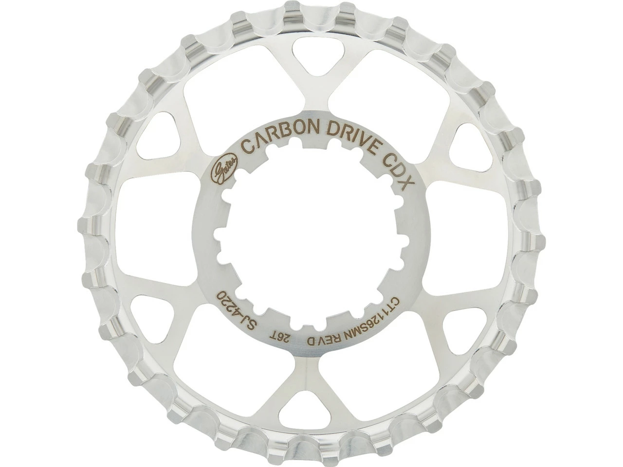 Spezifikationen:Einsatzbereich:All Mountain, Touring & TrekkingZähne:20 Z, 22 Z, 24 Z, 26 Z, 28 Z, 30 Z, 32 Z, 34 ZBefestigung:9-SplineTechnische Daten:Breite der Zähne:11 mmZahnteilung:11 mmDicke der Riemenscheibe an der Aufnahme:5,0 mmVersatz:0,5 mm (Montagefläche), 3,0 mm (Mittellinie)Material:EdelstahlKompatibilität:Shimano HG-Standard-Freilaufkörper mit neun Einkerbungen (Shimano MTB, Shimano Road)Features:CDX-Niveau: High-End Variante für hohe Belastungen und beste Performancegeeignet für Schlamm, Sand, Schnee und Eis sowie sämtliche Straßenmittlere Führungsnut (CenterTrack)hohe Laufleistungrobuster EdelstahlTechnologie:Gates Carbon Drive System