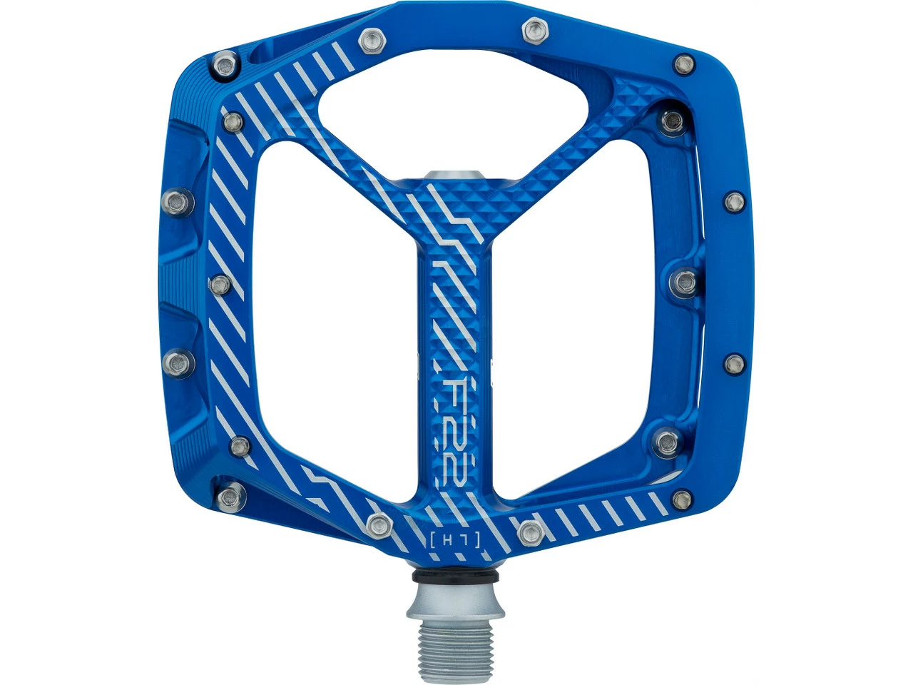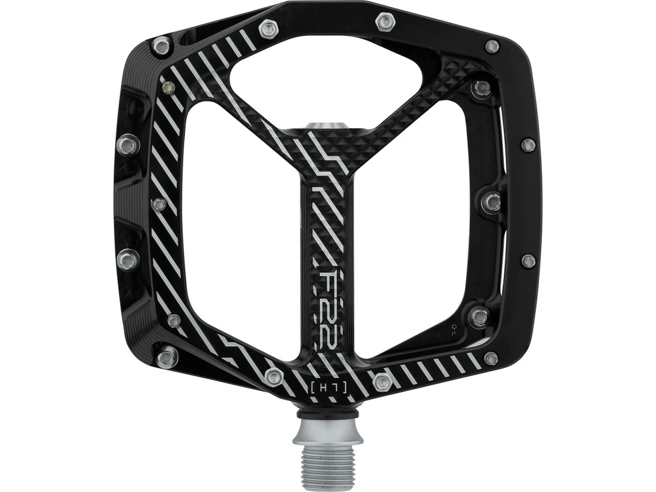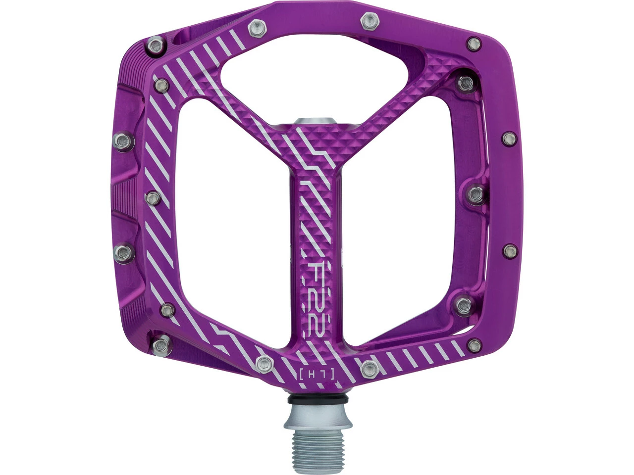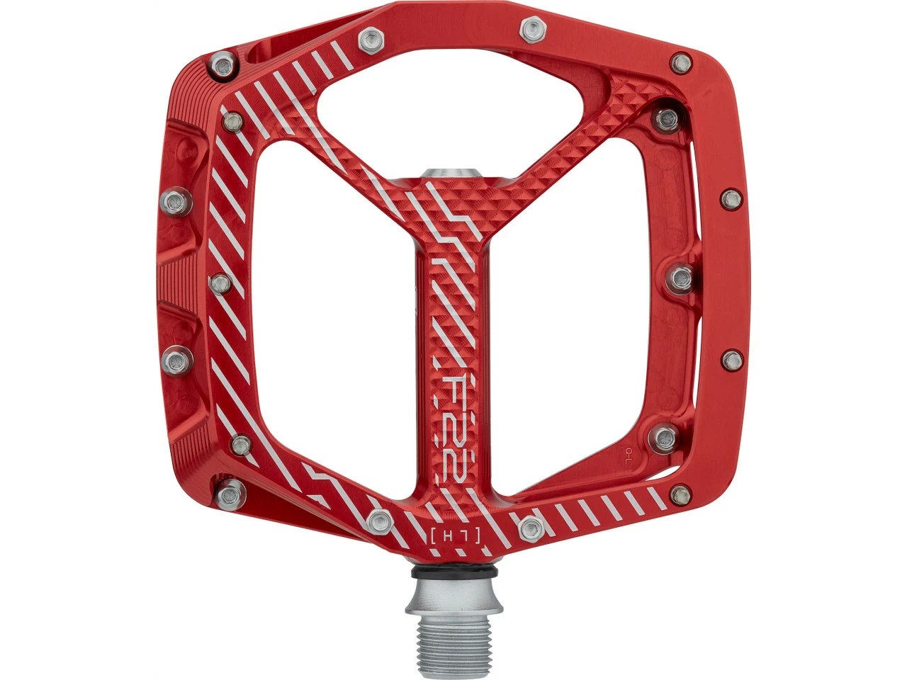 Spezifikationen:Einsatzbereich:All Mountain, Enduro, DownhillAusführung:PlattformpedaleTechnische Daten:Material Pedalkörper:AluminiumMaterial Achse:Stahl (CrMo)Lagerung:ein IGUS-Gleitlager, drei IndustrielagerDichtungen:intern, externBauhöhe:14 mm (Mitte, ohne Pinhöhe), 17 mm (außen, ohne Pinhöhe)Maße (L x B):111 mm x 105 mm (Außenmaß) / 102 mm x 105 mm (Standfläche)Anzahl Pins pro Pedal:22Pinhöhe:4 mm (Mitte), 6 mm (außen)Features:breite Plattformpedale für maximale Stabilität auf dem Mountainbikemit 11 Pins pro Seite für sicheren Haltdank asymmetrischer Form 30 % größere Kontaktfläche als beim Vorgänger F20von allen Seiten zur Mitte hin konkave Standfläche bietet den Füßen sicheren Halt7 Pins pro Seite mit Sechskantaußenprofil, Pinhöhe von 6 auf 5 mm anpassbar mithilfe von Spacernvier 4-mm-Pins (M4) pro Seite in der PedalmitteCNC-gefräster Pedalkörperwiderstandsfähige und langlebige Achse aus CrMo-Stahlvollständig zerlegbarHerstellernummer:PDF22