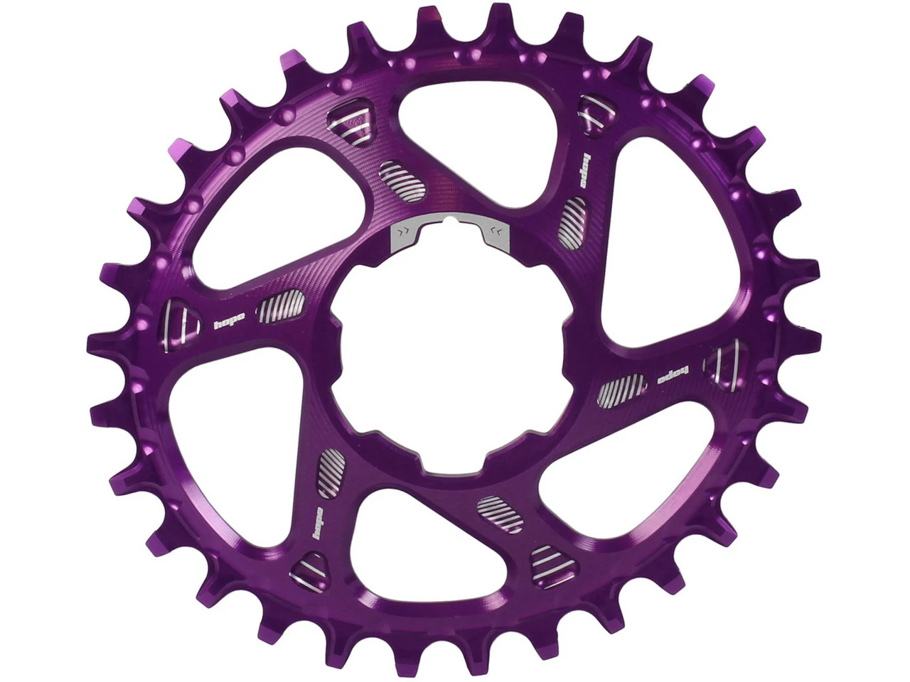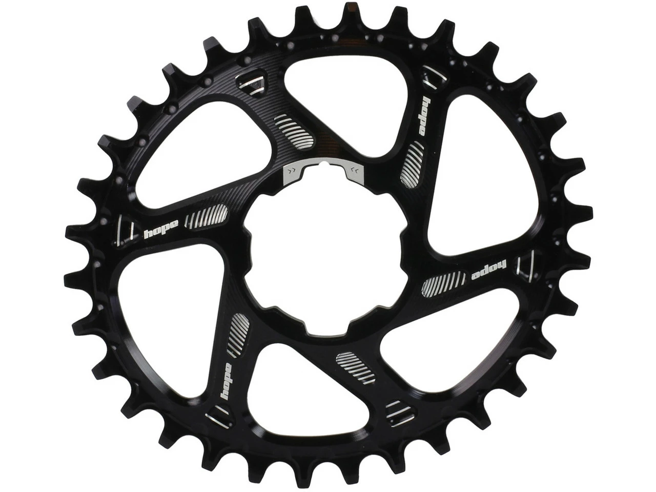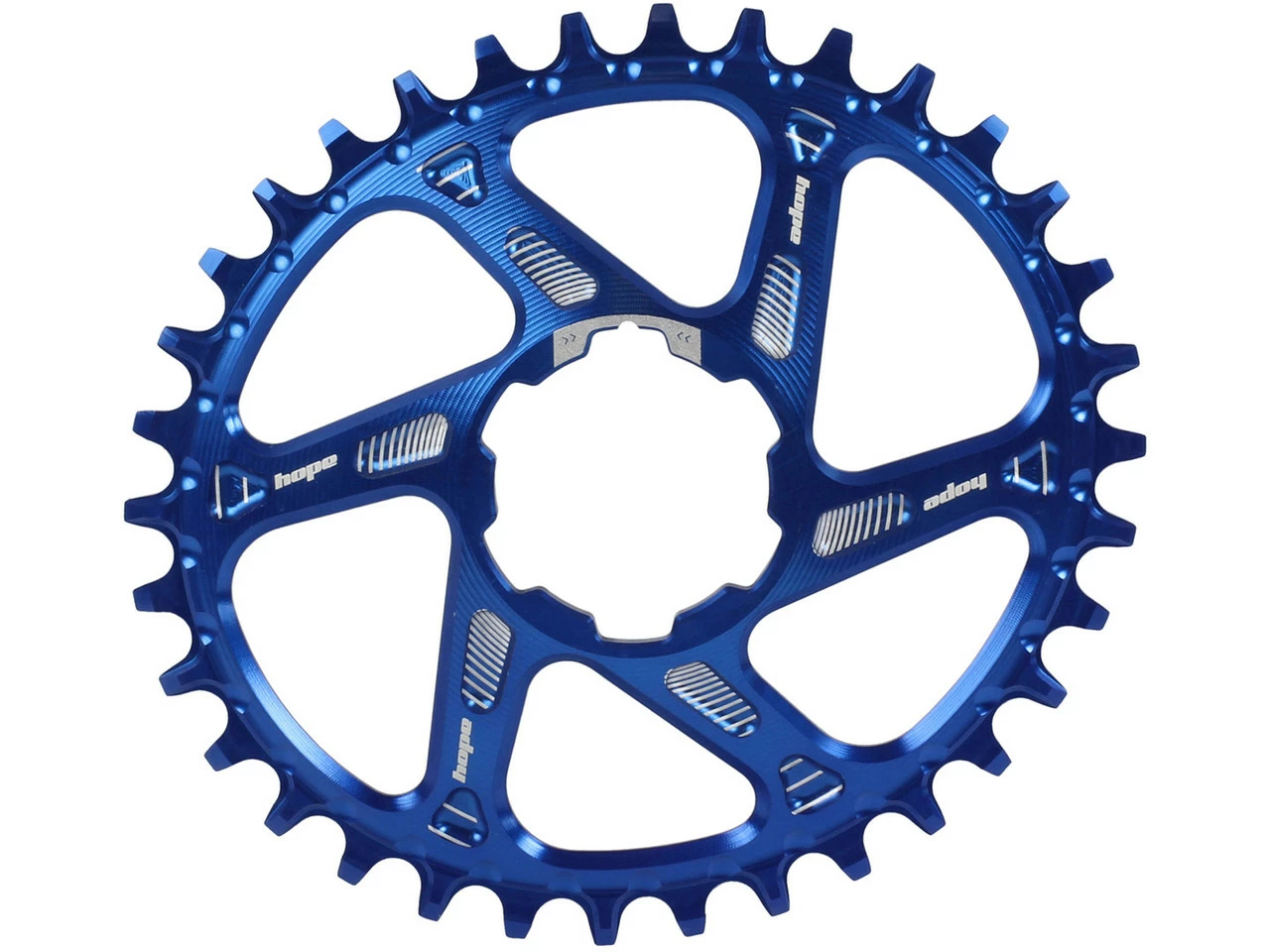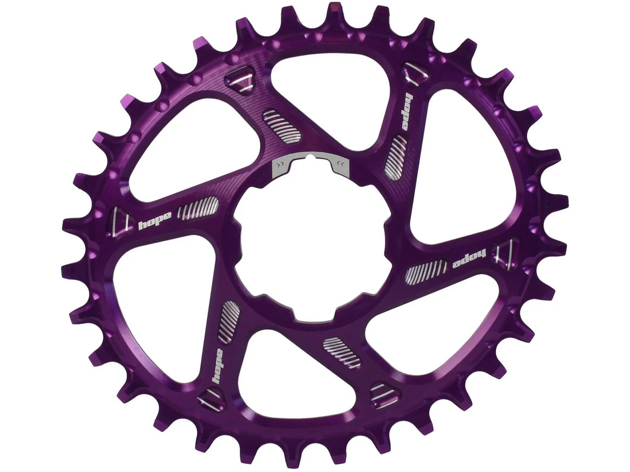 Das Hope Oval Spiderless Retainer Ring Direct Mount Kettenblatt ist oval und verfügt über eine Narrow-Wide-Zähnekonfiguration. Es wurde für 1×10-fach und 1×11-fach Antriebe konzipiert, wobei der Einsatz einer Kettenführung nicht erforderlich ist.