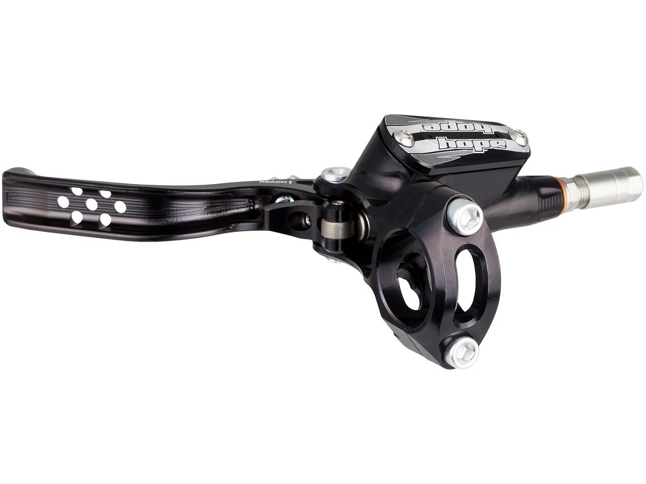 Der Tech Evo Ausgleichsbehälter ist relativ sperrig und zusätzlich ist es schwer dafür Platz am Lenker zu finden, wenn noch Schaltgriffe und der Remote für die Sattelstütze montiert werden müssen. Aus diesem Grund hat sich Hope mit dem Tech 3 um einen Ausgleichsbehälter bemüht, der sich problemlos mit anderen Schaltgriffen integrieren lässt. Der Ausgleichsbehälter ist als Folge dieses Designs nicht mehr für links und rechts baugleich. Der Tech 3 kann aber ohne spezielle Hebelklemme mit dem Shimano I-Spec (nur I-Spec-A) Schaltgriff kombiniert werden. Für SRAM besteht als Nachrüstteil eine filigrane und unauffällige Hebelklemme, ebenso wie für Shimano I-Spec II.