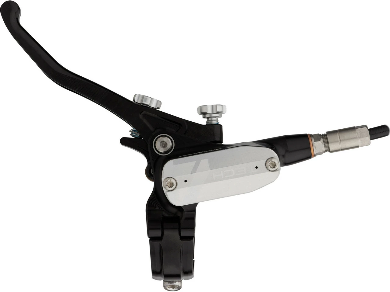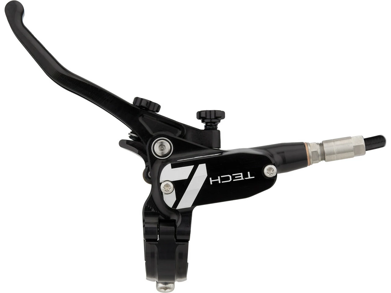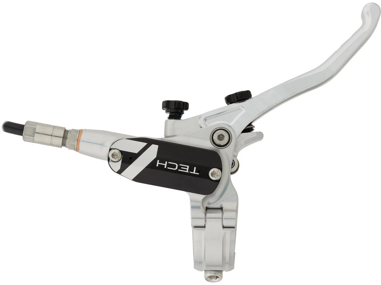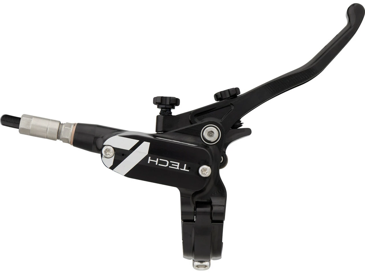 Spezifikationen:Einsatzbereich:Downhill, Dirtjump & SlopestyleBremsentyp:hydraulisch, 4-KolbenBremsmedium:DOT 5.1Leitung:KunststoffLeitungslänge VR/HR:1600 mmTechnische Daten Bremssattel:Montage Bremssattel:PostmountBremsbelag:Racing Organic Grade ResinBauweise:einteiligMaterial Bremssattel:AluminiumMaterial Kolben:Edelstahl, PhenolLeitungsanschluss:BanjoTechnische Daten Bremsgriff:Hebellänge:1-FingerEinstelloptionen:Griffweiteneinstellung, DruckpunktMontage:Klemmschelle (geteilt)Bauart:rechts (seitenspezifisch), links (seitenspezifisch)Material Bremshebel:AluminiumMaterial Bremsgriffgehäuse:AluminiumLeitungsanschluss:GeradeFeatures:hohe Bremspower für Bremsscheiben mit bis zu 220 mm DurchmesserPhenol-Einsätze in den Kolben und Kühlrippen am Sattel verhindern Überhitzungweiterentwickelte Technik mit deutlich mehr Druck verglichen mit Tech 3CNC-gefräster einteiliger BremssattelRollenlagerung im Hebelmechanismus verringert ReibungDruckpunkt und Hebelweite werkzeugfrei jederzeit anpassbarergonomische Hebelform für besseren Grip und weniger Ermüdungserscheinungenverstellbarer Hebelwinkelgeteilte Klemmschellekürzbare KunststoffleitungHinweis des Herstellers:Der V4 Bremssattel ist aufgrund seiner Bauweise