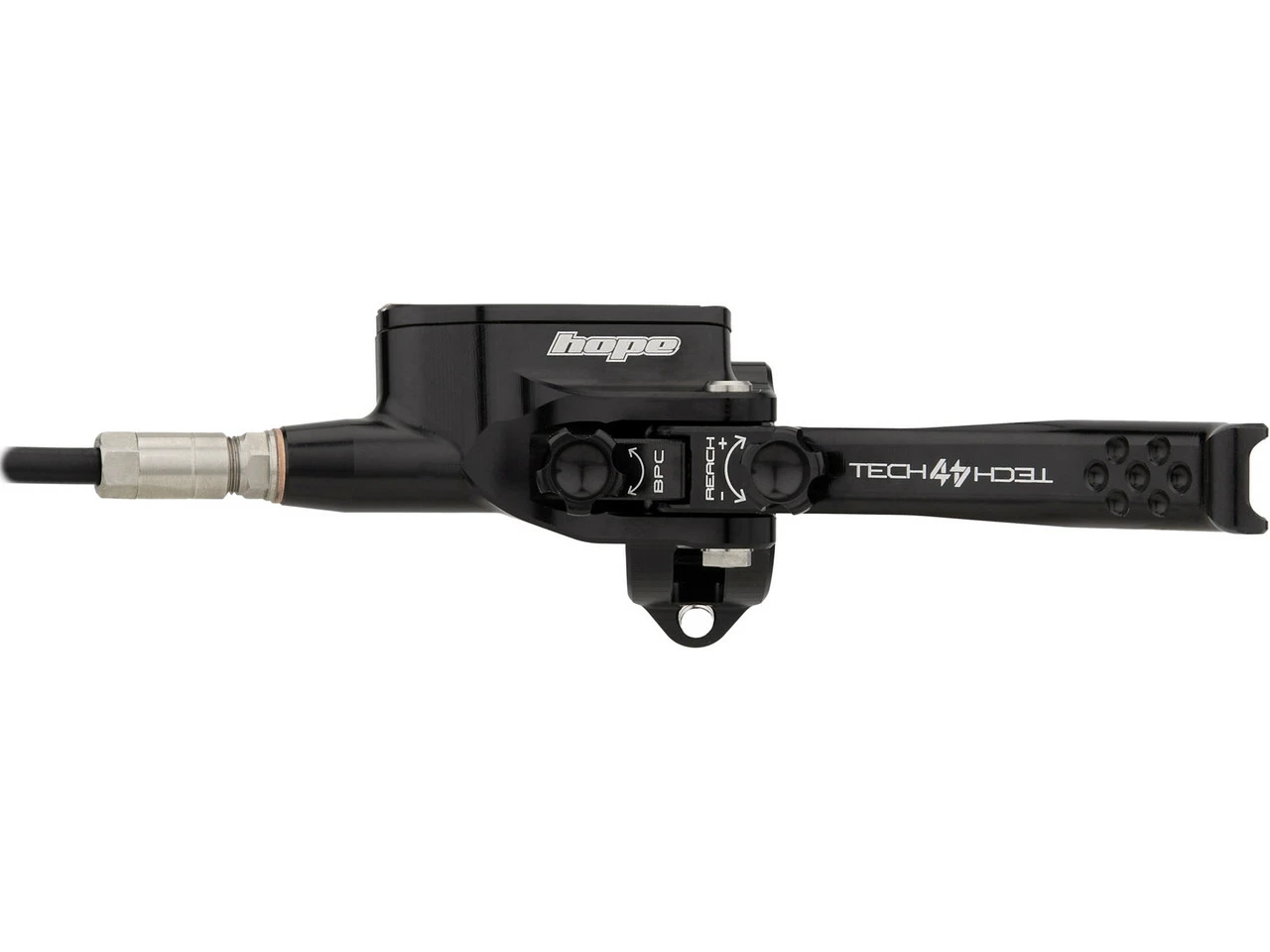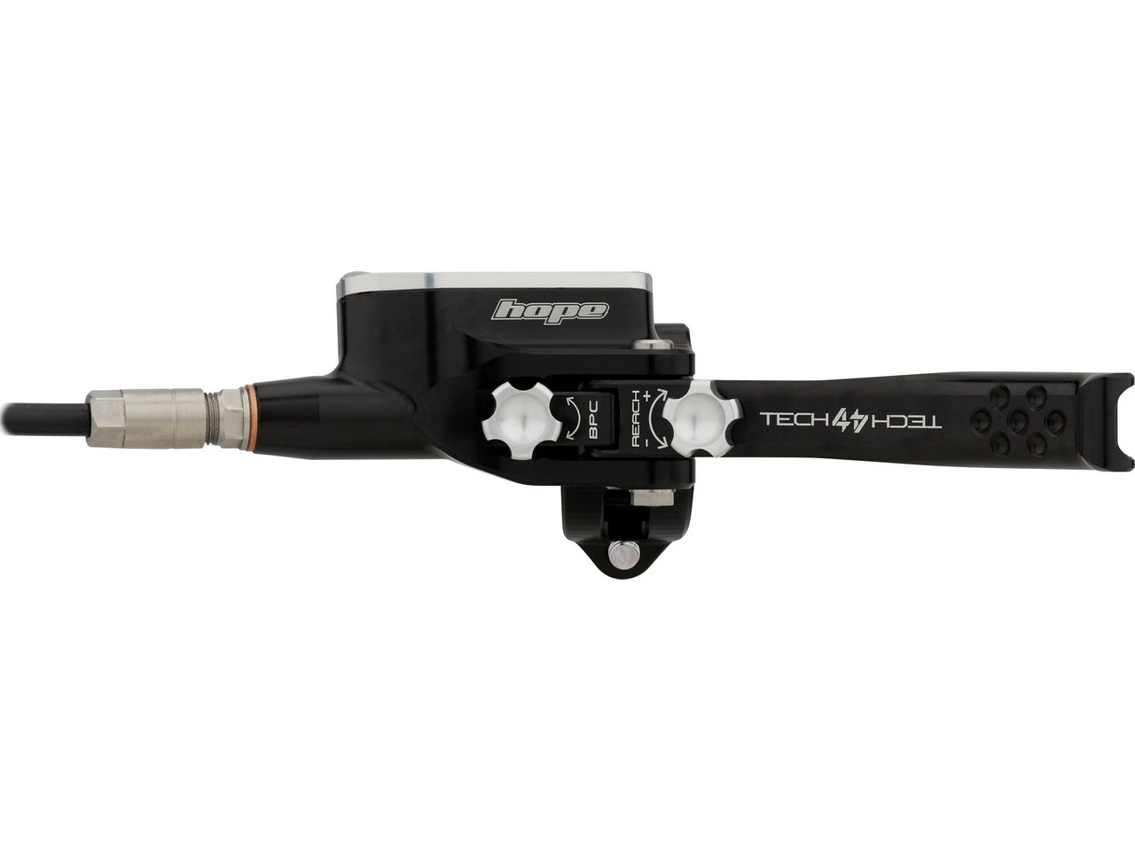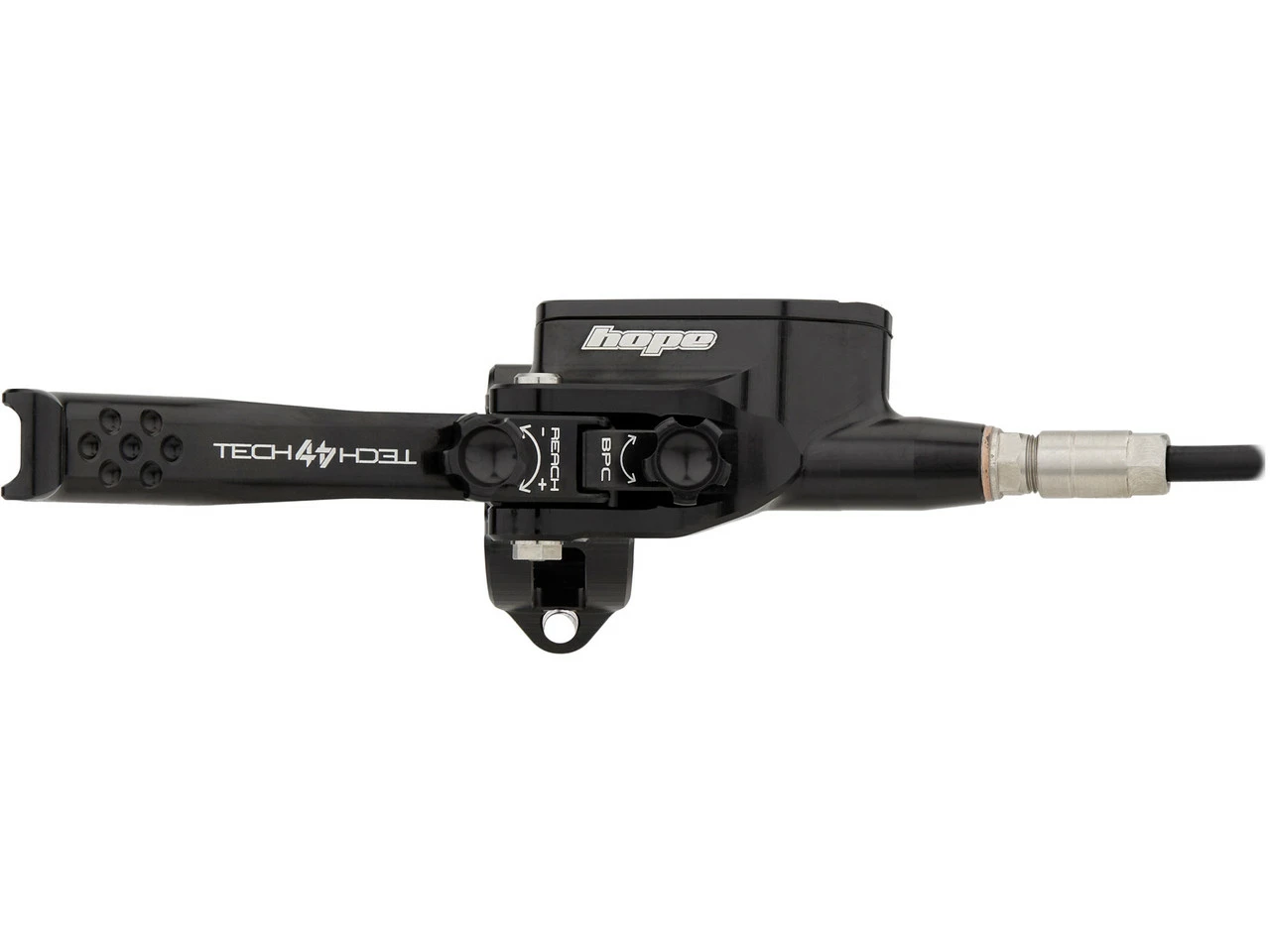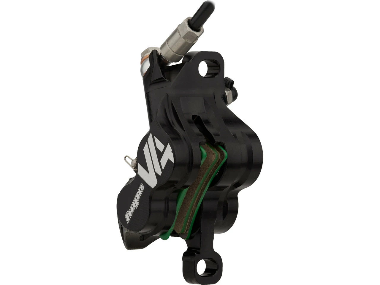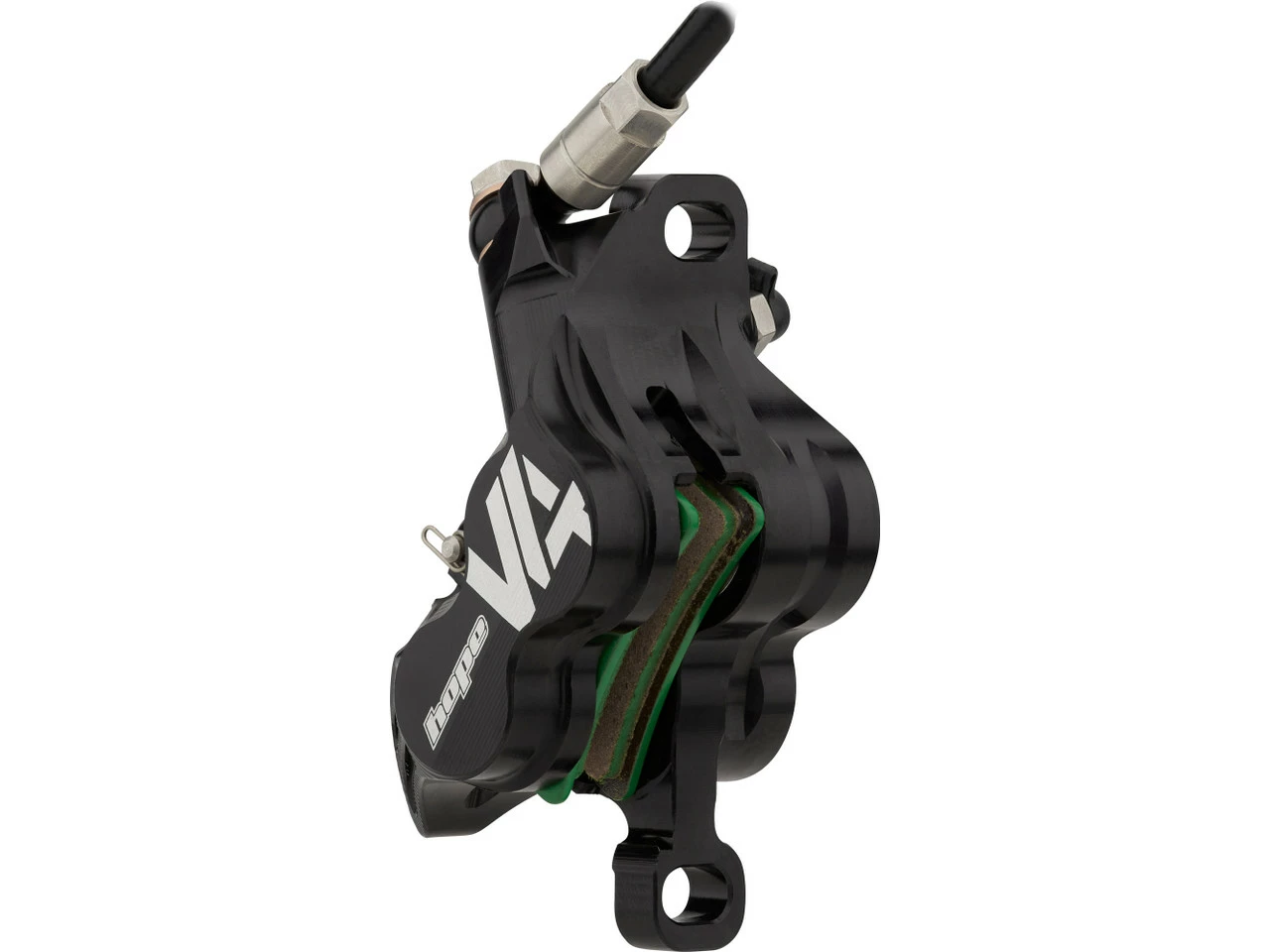 Die Tech 4 V4 Scheibenbremse mit Kunststoffleitung von Hope im v+h Set – ein Kraftpaket für Downhill-MTBs