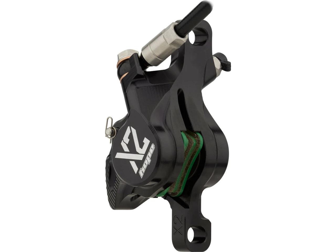 Die Tech 4 X2 von Hope ist eine hydraulische Scheibenbremse für Cross Country Bikes. Sie kombiniert den leichten 2-Kolben-Bremssattel X2 mit dem ergonomisch optimierten Tech 4 Bremsgriff. Die Federhärte des Tech 4 Griffs wurde verringert und gleichzeitig der hydraulische Druck im Vergleich zum Vorgänger um 30 % erhöht, sodass Bremsvorgänge leichter und gleichzeitig effizienter von der Hand gehen.