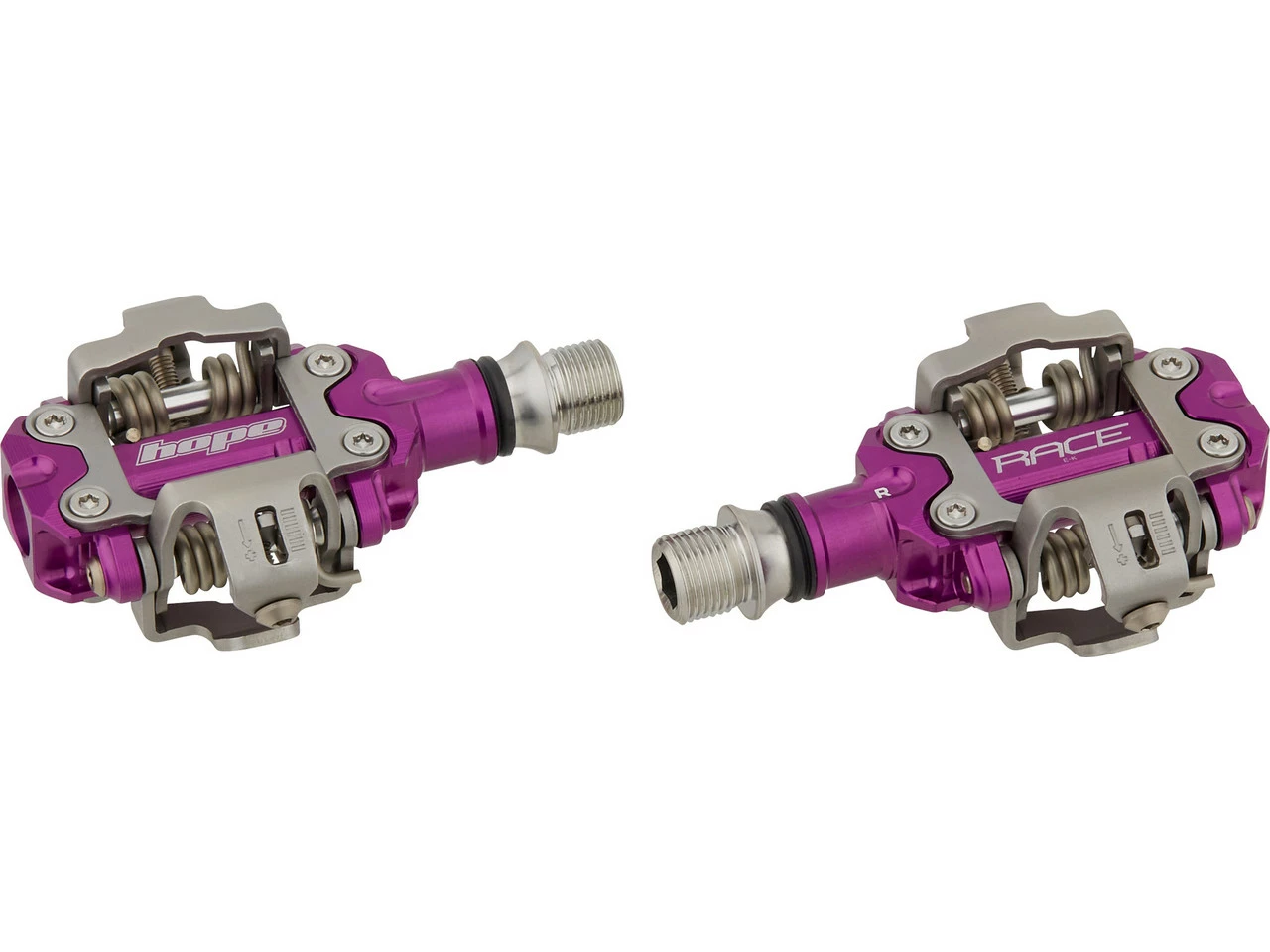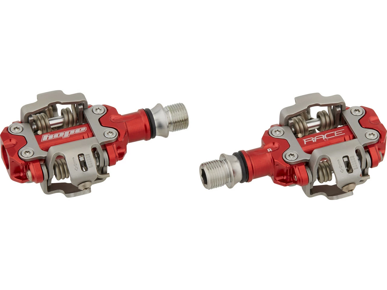 Spezifikationen:Einsatzbereich:Cross CountryAusführung:KlickpedalePedalsystem:HopeMontage Schuhplatte:2-LochTechnische Daten:Material Pedalkörper:AluminiumMaterial Achse:TitanLagerung:PatronenlagerBewegungsfreiheit:4° (No. 4), 5° (No. 5)Auslösewinkel:12° (No. 4), 13° (No. 5)Empfohlene Schuhplatten:Hope CleatsFeatures:rennorientierte Cross-Country-Klickpedale mit stabilen Titanachsen und CNC-gefrästen AluminiumkörpernHope-eigenes Dual-Klick-System für festen Halt und gleichmäßiges Ein- und Ausklickverhaltenstufenlos einstellbare Federkraftweiter Winkel für besonders flaches oder steiles Einklickenzwei Paar Cleats mit 4° oder 5° Float und unterschiedlichem Auslösewinkel2 mm seitlicher FloatCleats und Klickmechanismus aus rostfreiem Edelstahlwartungsarm und komplett zerlegbarHerstellernummer:PDURC
