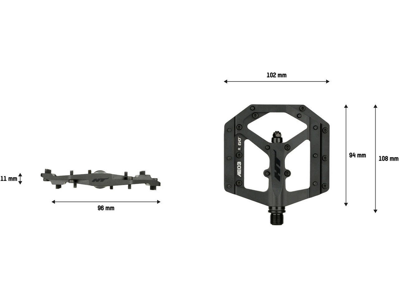 Lieferumfang:1 Paar Plattformpedale HT EVO AE03 Stealth Black Limited Editioninkl. Pins