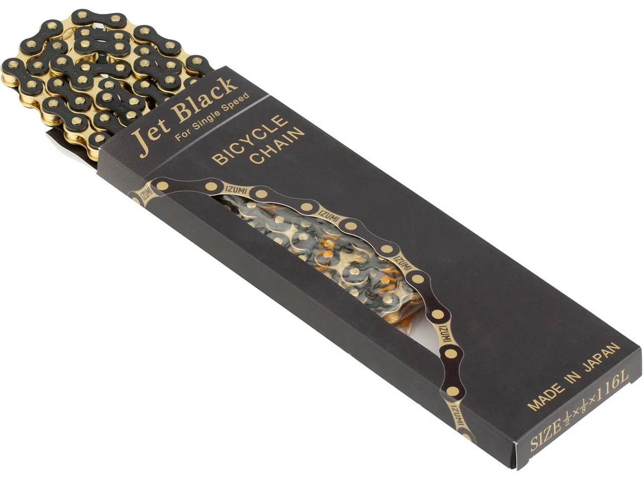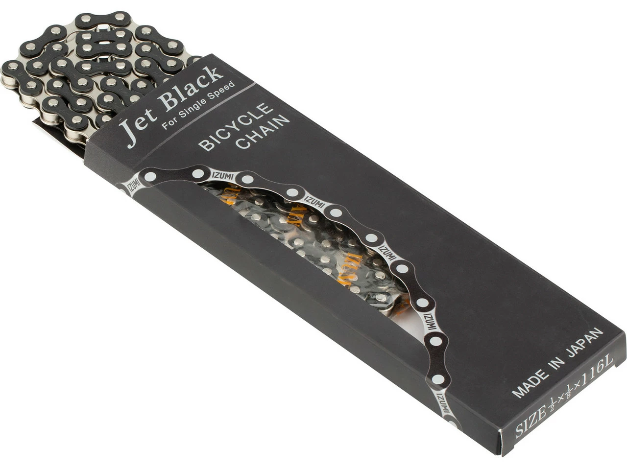 Spezifikationen:Einsatzbereich:Bahn, City, BMX, RoadSchaltstufen:1-fachTechnische Daten:Gliederzahl:116Verschlussart:KettenschlossGröße:1/2″ x 1/8″Laufrichtungsgebunden:NeinMaterial:StahlFeatures:überdurchschnittliche HaltbarkeitHerstellernummern:black:ES410gold:ES410GPsilver:ES410NPtough guard silver:ES410TGjet black-silver:ES410JB/Sjet black-gold:ES410JB/Gjet black:ES410JB/JBLieferumfang:1 x Kette IZUMI ES410