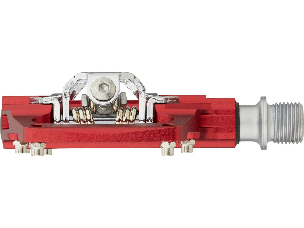 Das AM Trap ist ein leichtes, edles und robustes Pedal kompatibel mit Shimano SPD. Der Pedalkörper ist aus CNC 6061 Aluminium gefertigt, Stahlachse und Bindungen sind aus CroMo. Eine Seite SPD-System und eine Seite Plattform mit 8 Pins. Die austauschbaren Pins auf der Plattformseite geben selbst auf der wildesten Strecke beste Standsicherheit.
