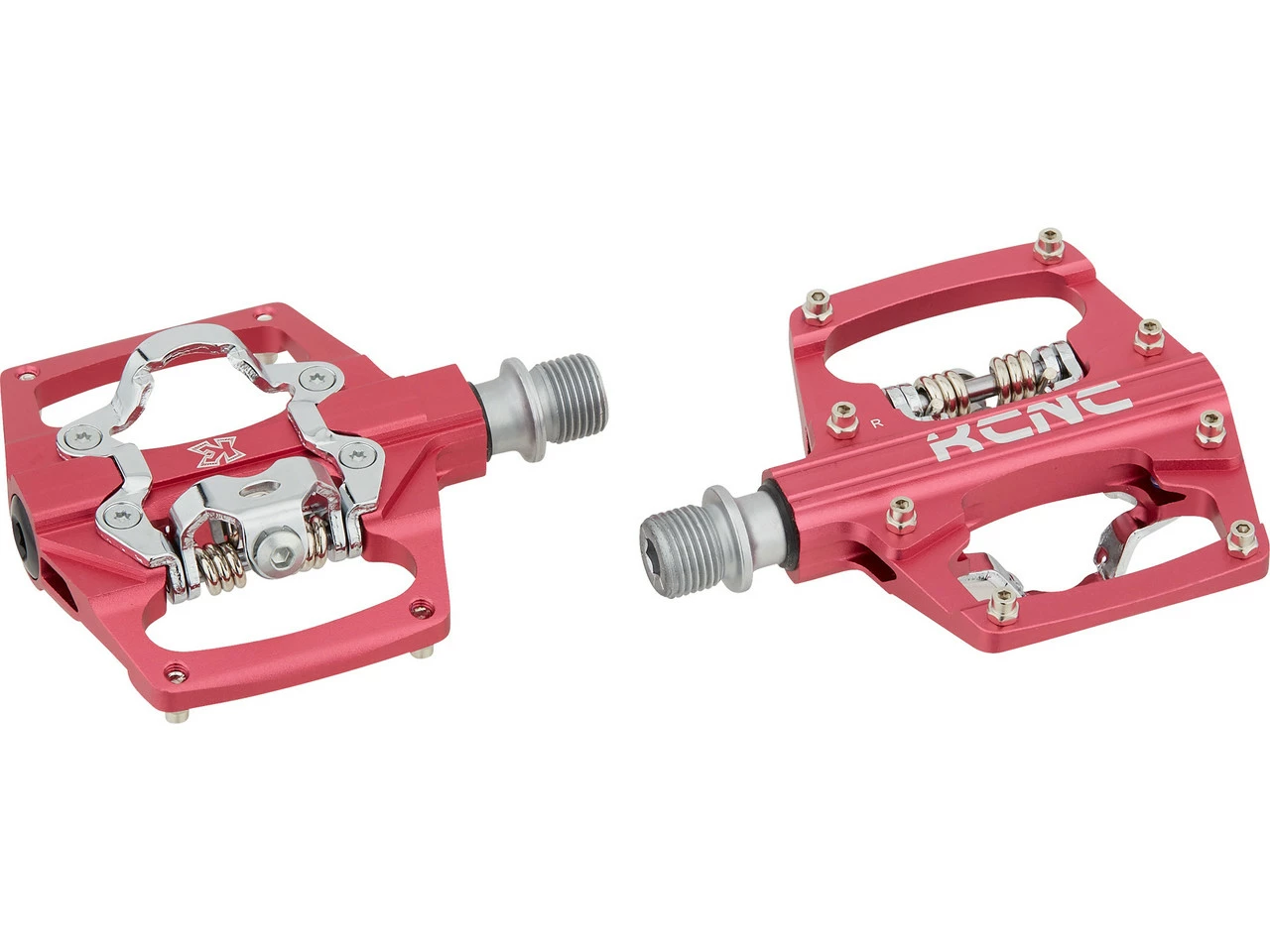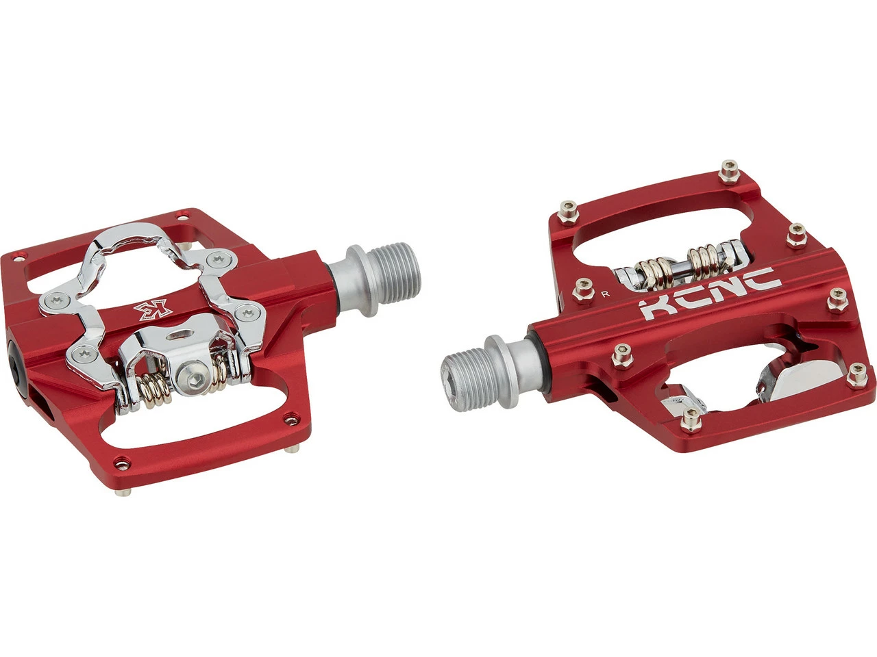 Spezifikationen:Einsatzbereich:All MountainAusführung:Hybridpedale (eine Seite Klick, eine Seite Plattform)Pedalsystem:SPDTechnische Daten:Material Pedalkörper:AluminiumMaterial Achse:Stahl (CroMo)Lieferumfang:1 Paar Klick-/Plattformpedale KCNC AM Trap