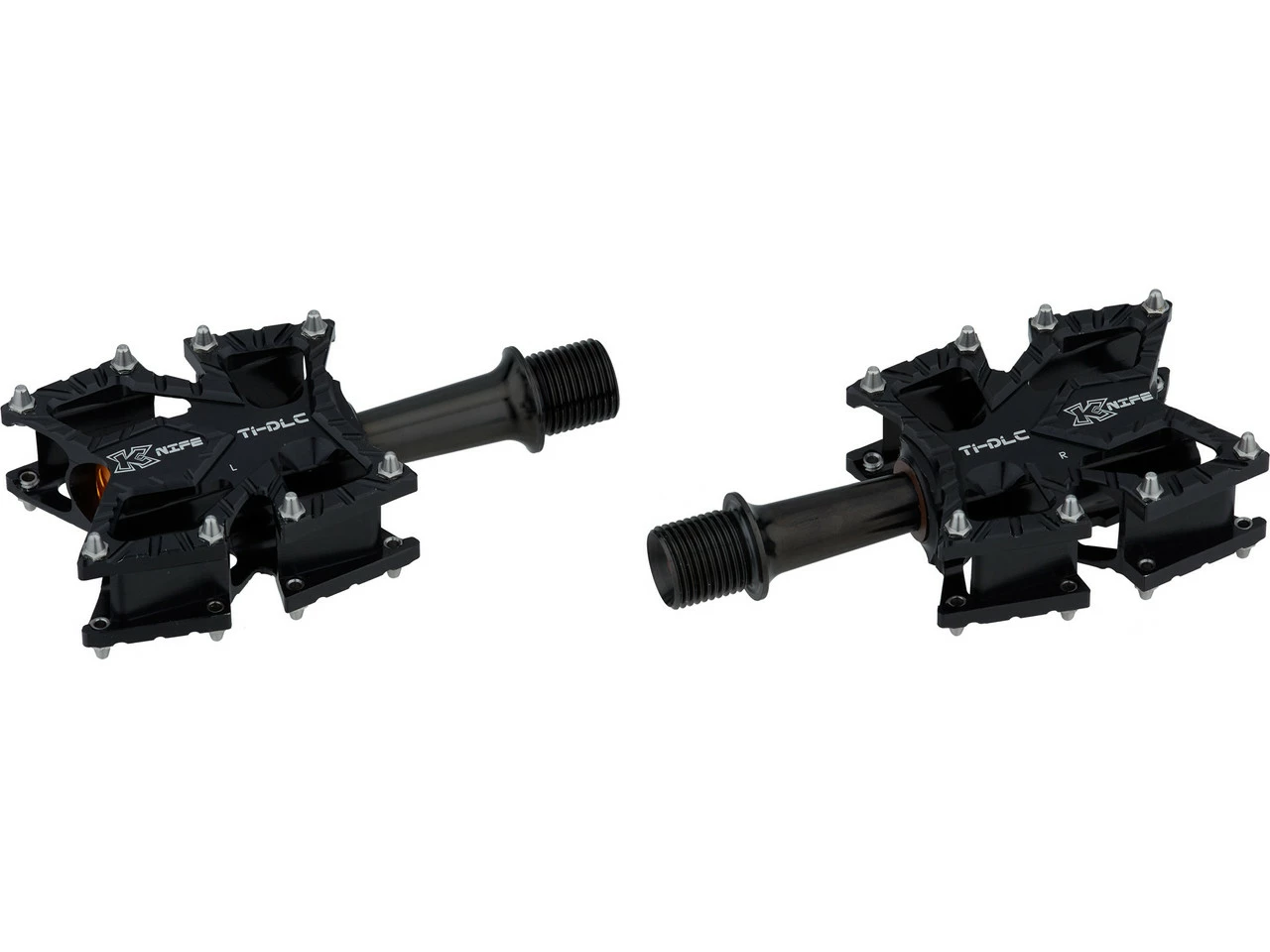 Die Road Plattformpedale von KCNC haben eine leichte Titanachse, die mit einer verschleißmindernden Beschichtung versehen wurde. Der extravagant geformte Pedalkörper besteht aus stabilem Aluminium. Auf die hochwertigen Lager und die haltgebenden Edelstahlpins kannst Du Dich voll und ganz verlassen.