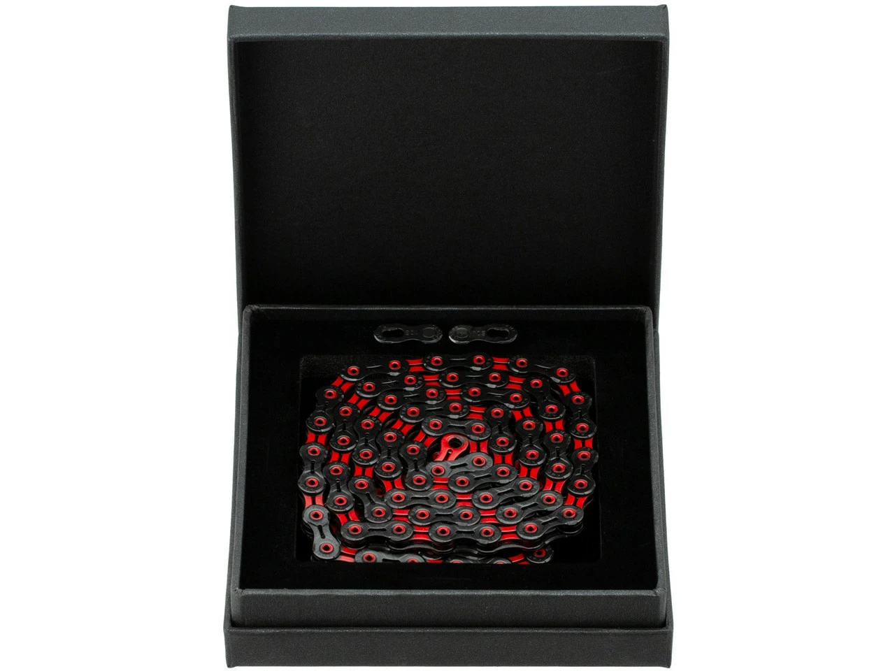 Spezifikationen:Einsatzbereich:Road, Cross Country, Gravel, CyclocrossSchaltstufen:10-fachTechnische Daten:Gliederzahl:116Verschlussart:Kettenschloss (MissingLink)Größe:1/2″ x 11/128″Nietentyp:hohlPinlänge:5,88 mmLaufrichtungsgebunden:NeinEmpfohlene Gruppen:Shimano, Campagnolo und SRAM 10-fach SchaltsystemeMaterial:StahlFeatures:5 von 5 Punkten auf der LanglebigkeitsskalaTop-PerformanceDouble X-Durabilitysuperleichtgewichtsreduzierte Innen- und Außenlaschenkomplett schwarz oder mit farbigen Innenlaschen und NietenTechnologie:X-Bridge
