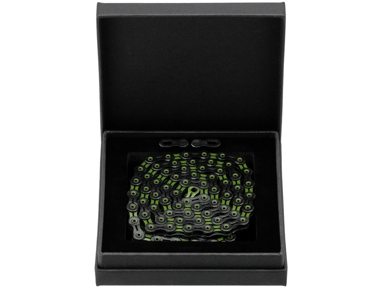 Herstellernummern:black:BD10B0116black-red:BD10BR116black-green:BD10GG116black-blue:BD10BB116Lieferumfang:1 x Kette KMC DLC101 x Kettenschloss KMC MissingLink 10R DLC