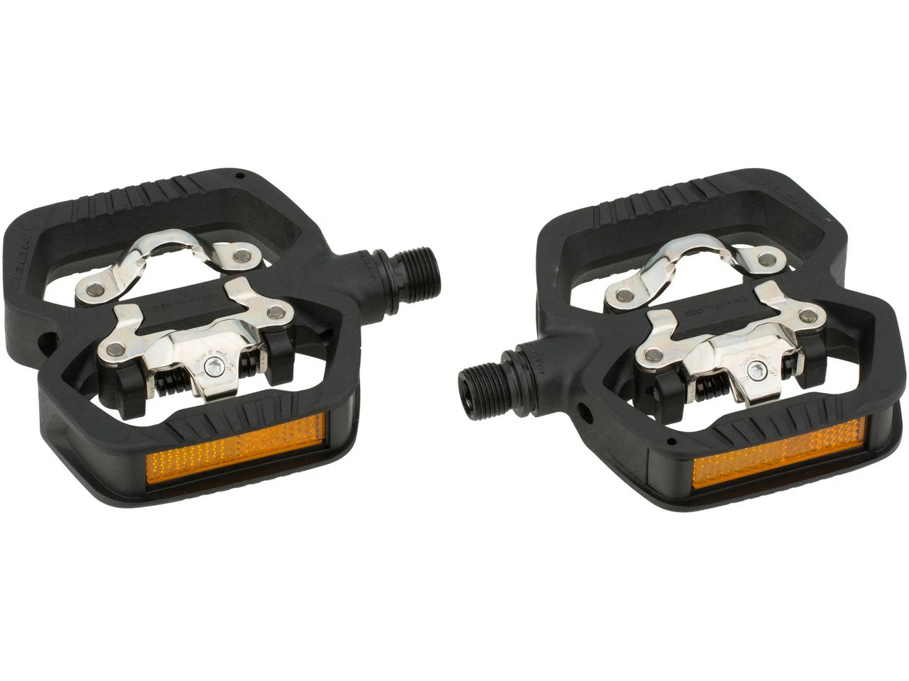 Spezifikationen:Einsatzbereich:City, Touring & Trekking, RoadAusführung:Hybridpedale (eine Seite Klick, eine Seite Plattform)Pedalsystem:SPDMontage Schuhplatte:2-LochTechnische Daten:Material Pedalkörper:KunststoffMaterial Achse:Stahl (CrMo)Maße [B]:84 mmBewegungsfreiheit:6°Auslösekraft:5 – 10 NmAuslösewinkel:13°Empfohlene Schuhplatten:X-Track Cleats, X-Track Easy CleatsDistanz Pedalmitte/Kurbelarm:56 mmFeatures:Hybriddesign mit strukturierter Plattform für mehr Komfort, Stabilität und SicherheitAuslösehärte ganz einfach einstellbarKörper aus Verbundstoffinklusive Cleats mit MehrfachausstiegsfunktionHerstellernummer:21855