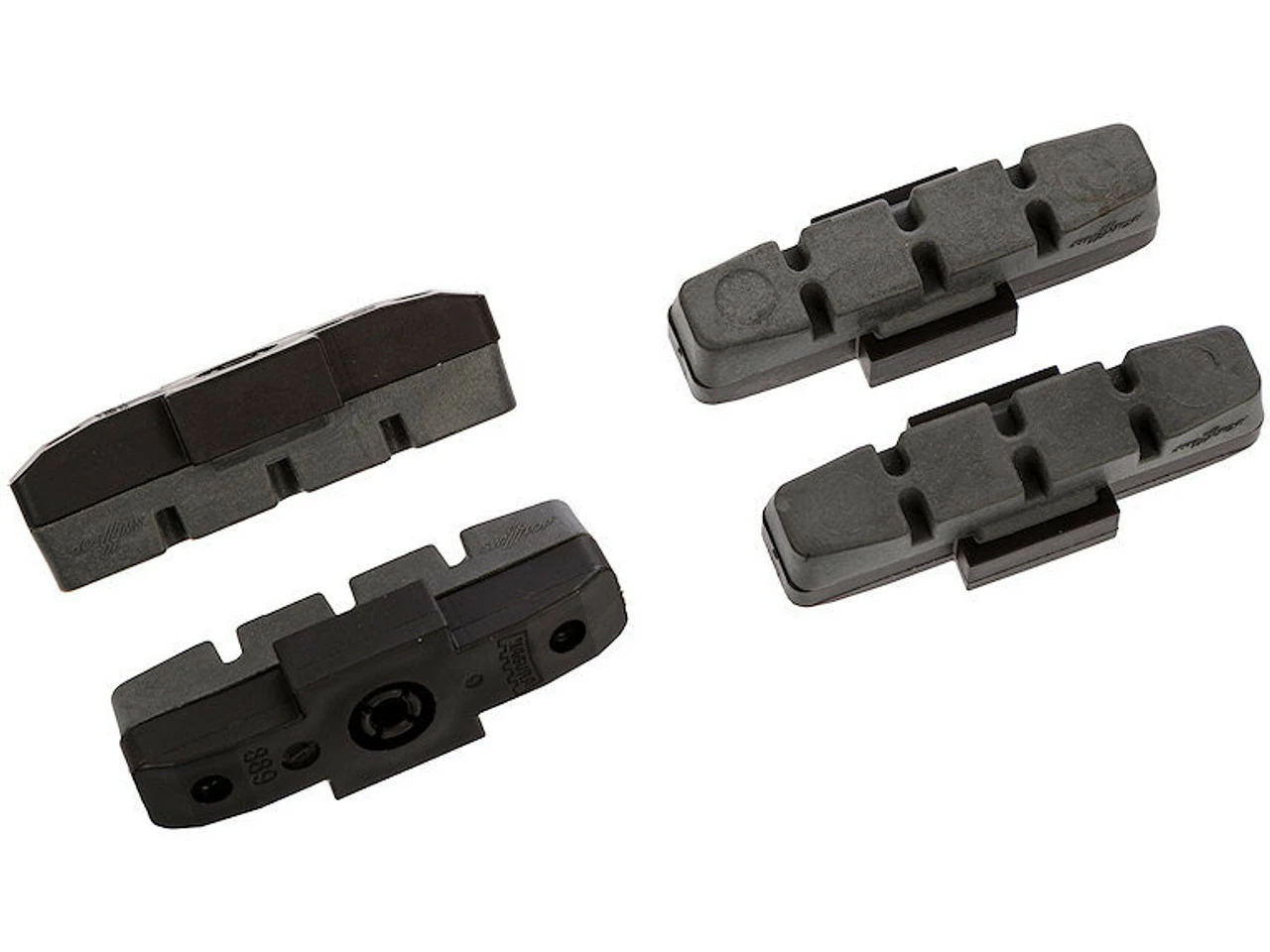Graue Standardbremsbeläge für optimale Haltbarkeit. Geeignet für harteloxierte Aluminium- und Keramikfelgen.