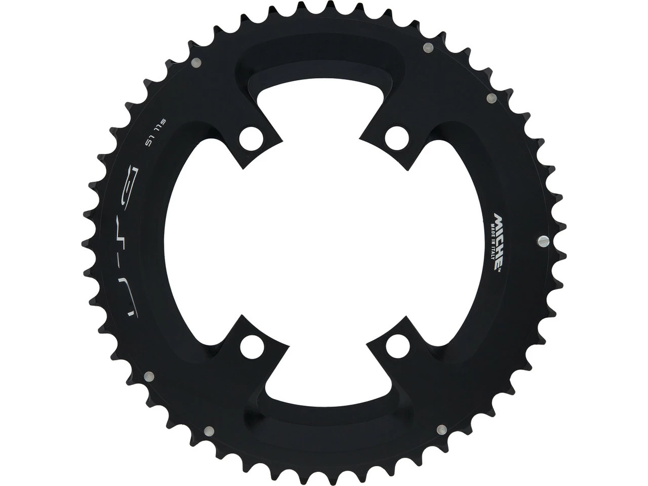 Das Miche Kettenblatt Super 11 UTG ist mit den Shimano Road 2×11-fach-Kurbeln Ultegra 6800 und 105 5800 kompatibel, die einen asymmetrischen Lochkreisdurchmesser von 110 mm aufweisen.