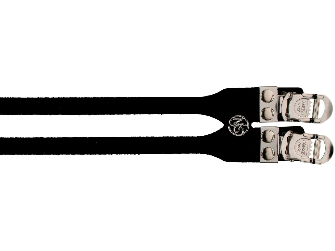 Die FIT Alpha Sports 2-buckle Pedalriemen von MKS sind für japanische Keirin-Rennen zugelassen (NJS-Zulassung). Riemen sind die klassische Variante, den Schuh fest mit dem Fahrradpedal zu verbinden. Dieses Modell aus Wildleder ist extra breit und mit doppeltem Riemen und zwei Schnellverschlüssen aus rostfreiem Stahl versehen. Die FIT Alpha Sports Pedalriemen können an vielen