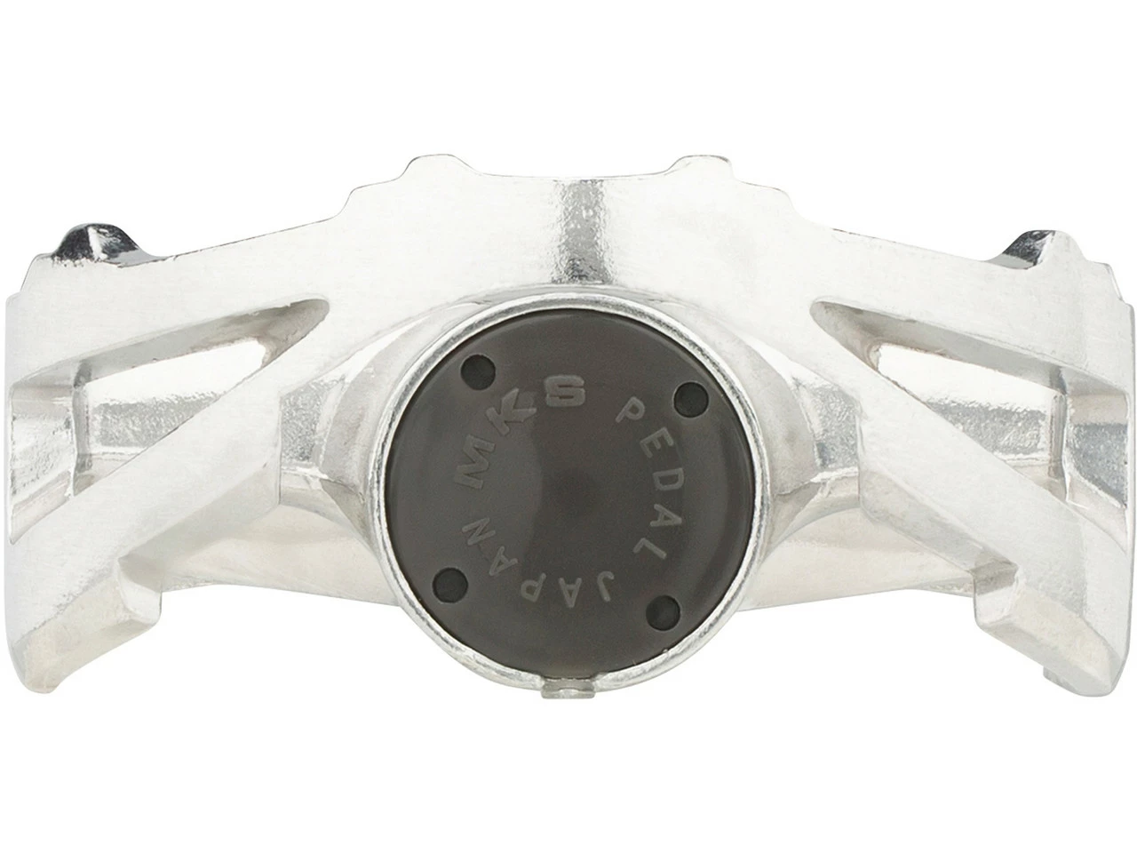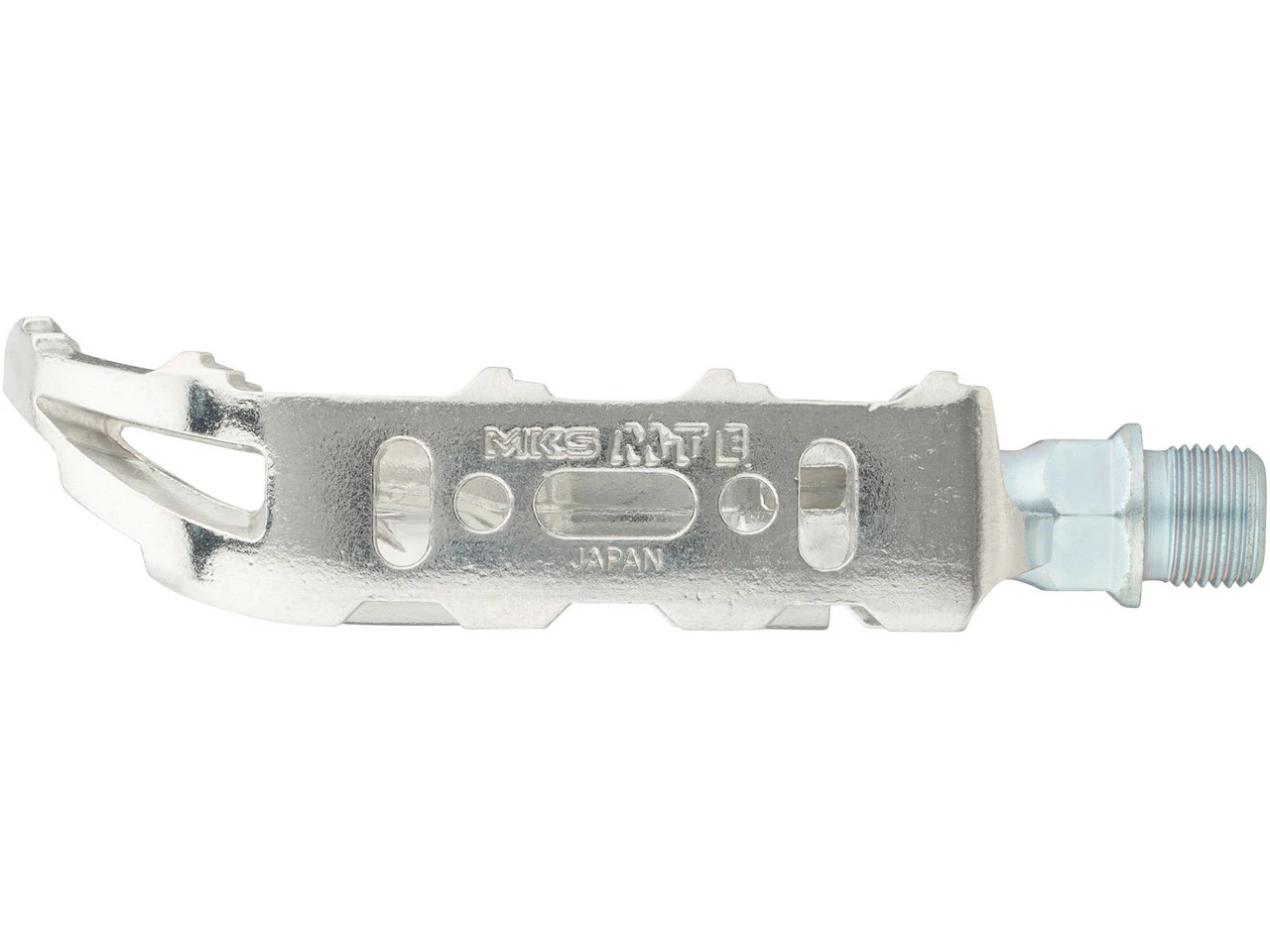 Die MT-E Plattformpedale von MKS sind mit einem besonders langen Käfig ausgestattet, der auch breiten Schuhen perfekten Halt auf den Pedalen gibt. Ganz gleich, ob Du damit eine Gravel-Tour planst oder durch die Stadt cruist: Schick unterwegs bist Du damit allemal.
