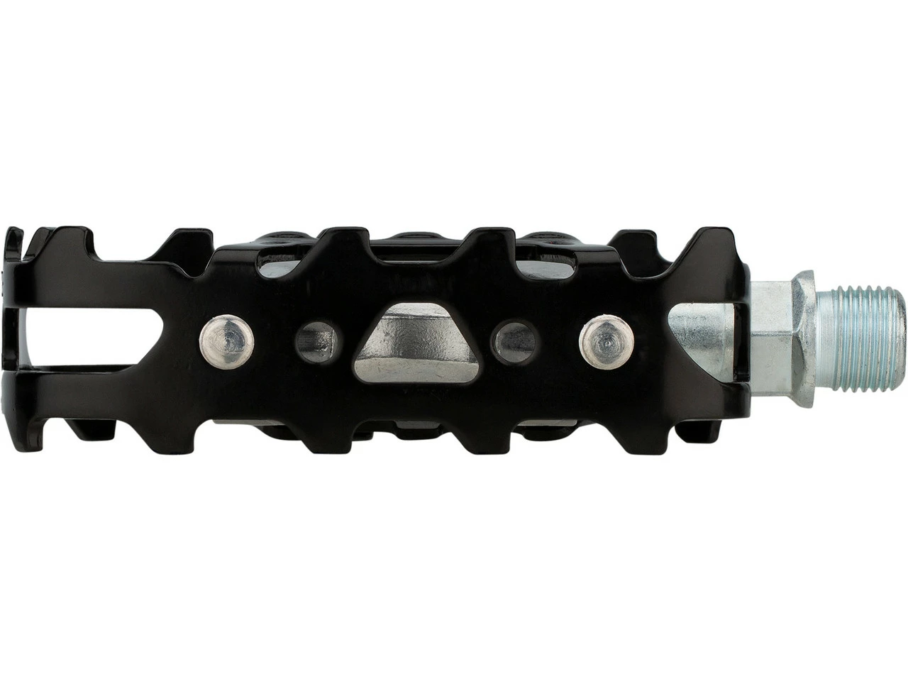 Die MT-LITE Plattformpedale von MKS sind mit einem besonders griffigen Käfig ausgestattet, der Deinen Schuhen selbst im Gelände besten Halt bietet – auch ohne die optional nachrüstbaren Pedalhaken.