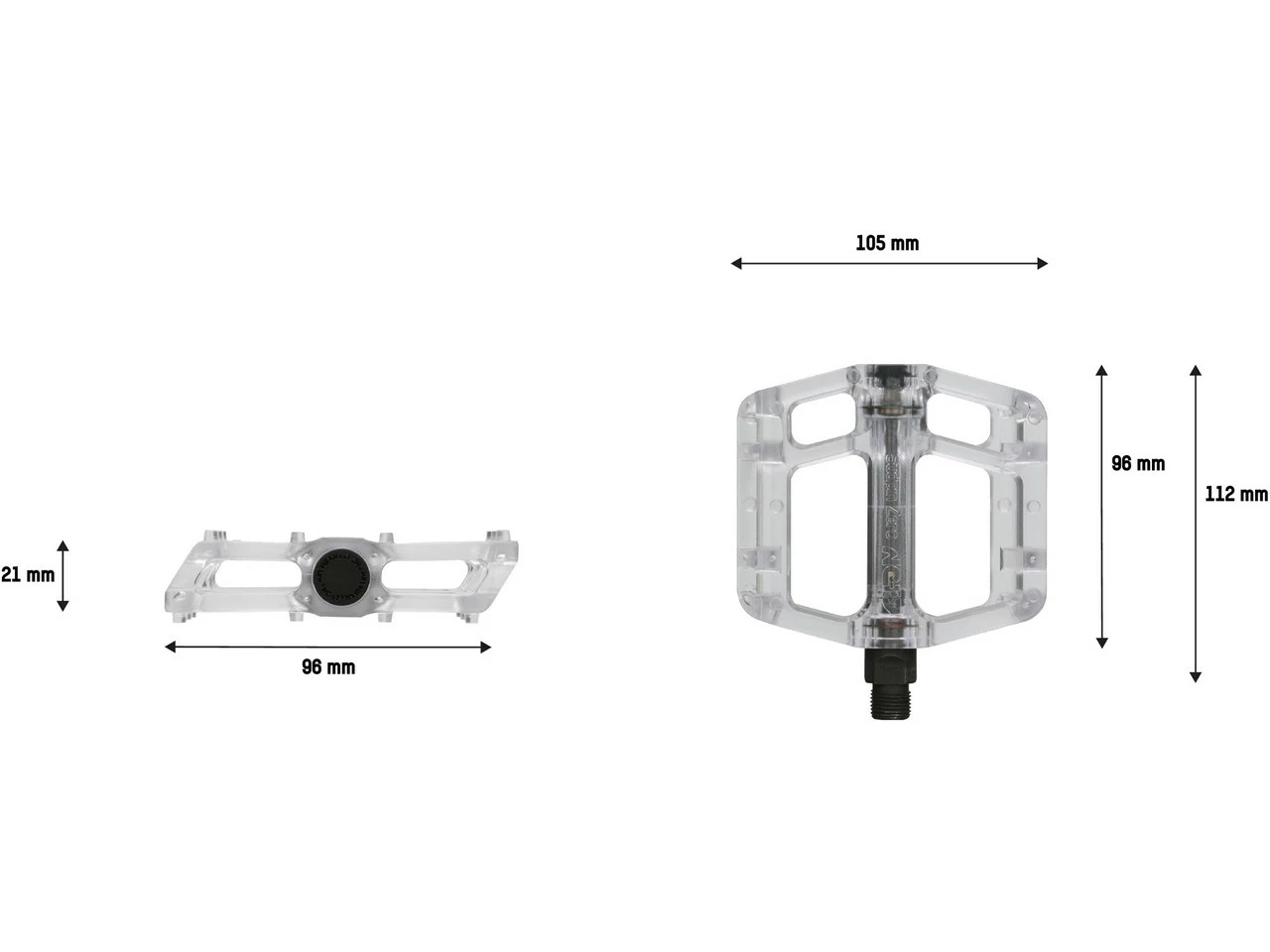 Spezifikationen:Einsatzbereich:All Mountain, TrailAusführung:PlattformpedaleTechnische Daten:Material Pedalkörper:Kunststoff (CR44)Material Achse:Stahl (CrMo)Lagerung:KugellagerBauhöhe:20 mmMaße (Länge x Breite):96 x 96 mm*