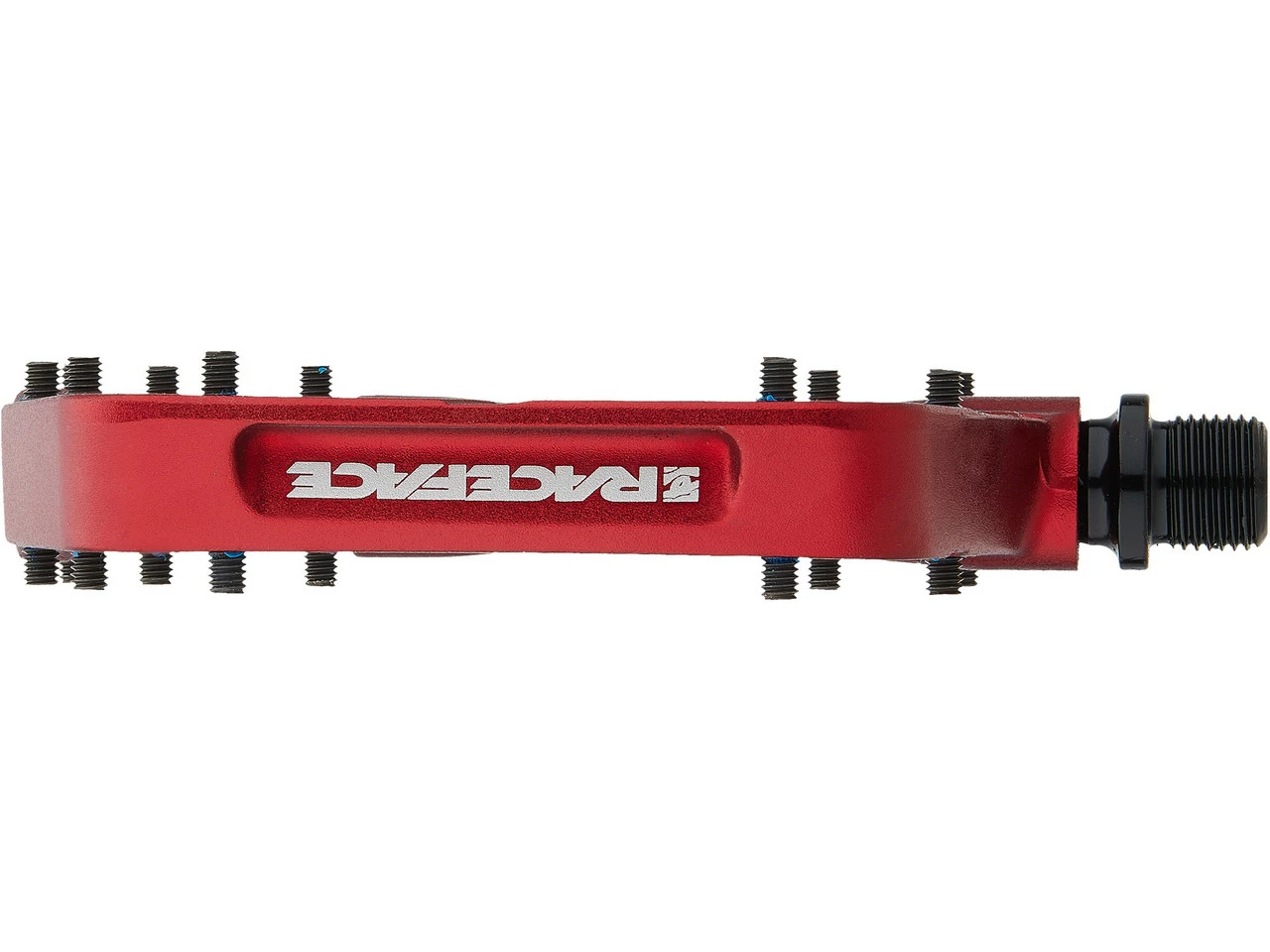 Die Aeffect R Aluminium-Plattformpedale von Race Face geben Dir auf Singletrails mit ihrer großen Plattform sicheren Halt und sind dabei leicht und widerstandsfähig. Die Pins, zehn pro Pedalseite, sind austauschbar.