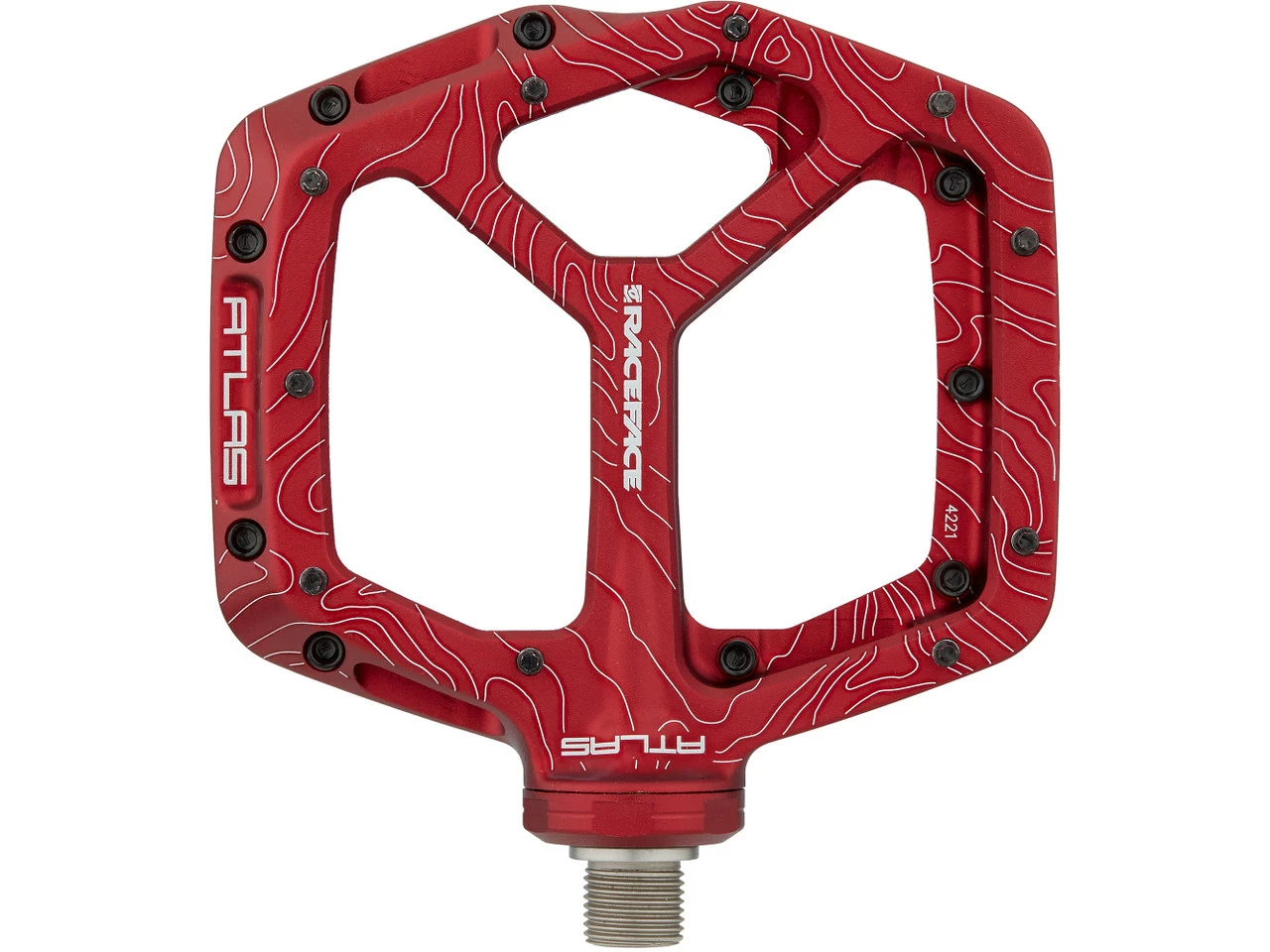 Spezifikationen:Einsatzbereich:Enduro, Downhill, All MountainAusführung:PlattformpedaleTechnische Daten:Material Pedalkörper:Aluminium (6061)Material Achse:Stahl (CrMo)Bauhöhe:12 mmMaße [L x B]:110 x 108 mmAnzahl Pins pro Pedal:20Features:langlebigdünne, große Plattform, breiter als beim Vorgängermodellguter Grip durch verstell- und austauschbare SHCS Hex Traction Pins (10 pro Pedalseite)längere Pins als beim Vorgängermodelleinfache WartungLieferumfang:1 Paar Plattformpedale Race Face Atlas4 x Ersatzpin Race Face40 x Unterlegscheibe