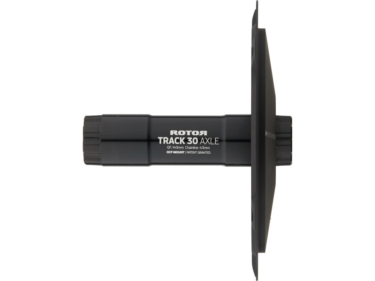 Die Track 30-mm-Kurbelachse von Rotor erlaubt es Dir, die leichten ALDHU 3D+ oder VEGAST Kurbelarme und ein noQ Kettenblatt auf der Bahn zu verwenden. Der Q-Faktor beträgt 140 mm und ist somit auf den Einsatzbereich abgestimmt. Die Achse wird inklusive einem 5-Loch-Spider mit 144 mm Lochkreis geliefert. Außerdem sind fünf Kettenblattschrauben dabei, die anders als beim Vorgängermodell mithilfe der Gewinde des Spiders im Kettenblatt verschraubt werden.