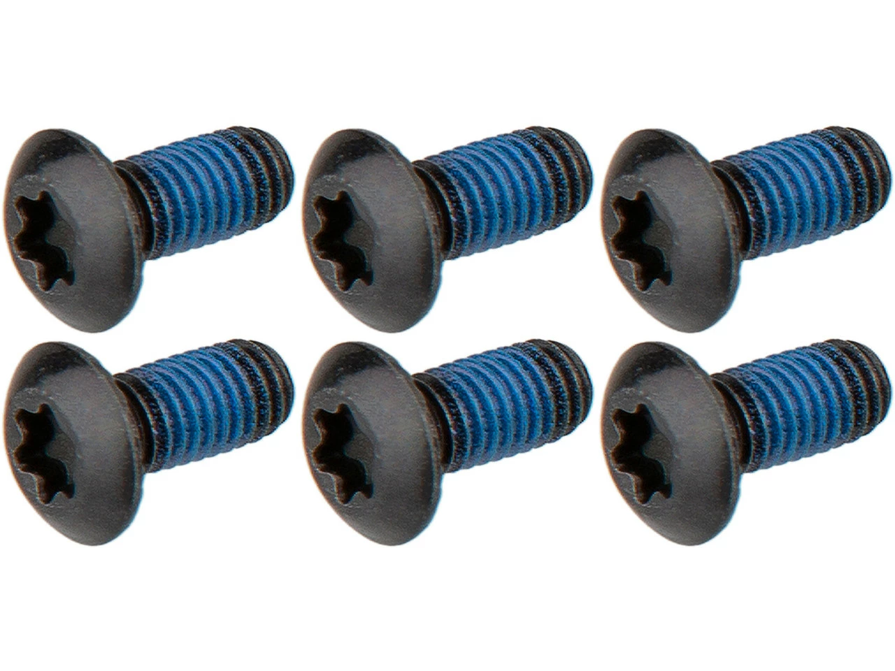 Der Shimano Befestigungssatz für die SM-RT26 6-Loch Bremsscheibe besteht aus sechs Befestigungsschrauben und drei passenden Sicherungsplatten.