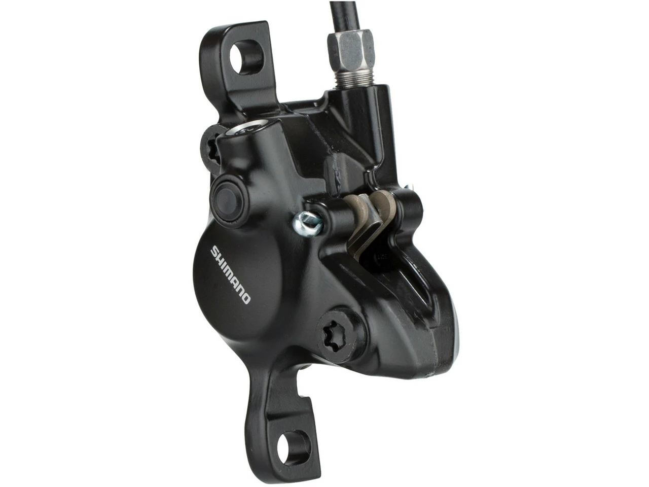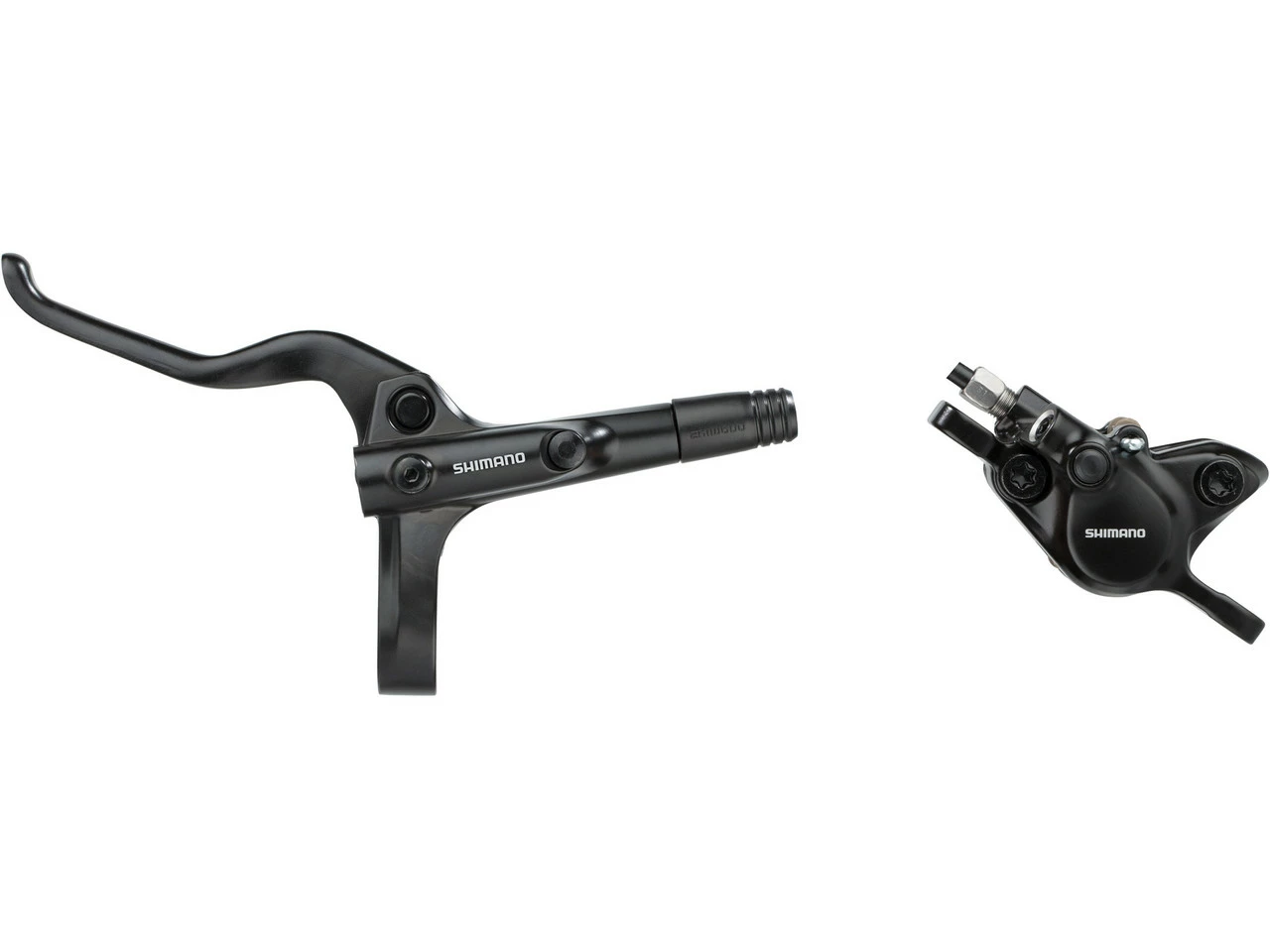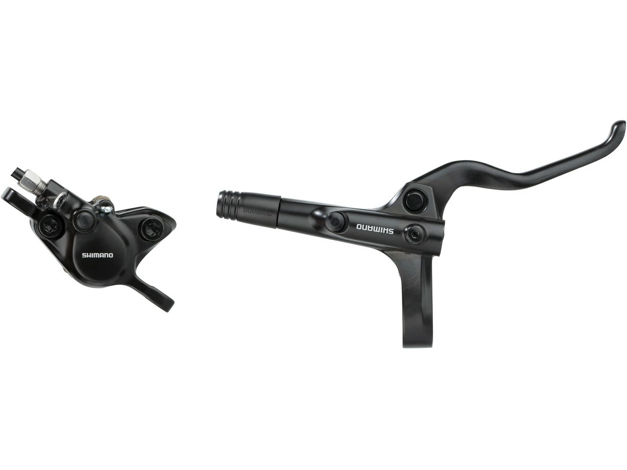 Die Shimano BR-MT200 Scheibenbremse ist ein preisgünstiges Bremssystem ohne Gruppeneinbindung. Mit seinem vielseitigen Design eignet es sich für zahlreiche Fahrradtypen im MTB- oder auch Trekking- und Urban-Bereich. Die Leistung des 2-Kolben-Bremssattels ist an Einsteiger angepasst und entfaltet sich zuverlässig ohne große Geräuschentwicklung. Dank One Way Bleeding Technologie ist die Entlüftung kein Problem. Der BL-MT200 3-Finger-Bremshebel hat eine auch für kleine Hände bequem fassbare Griffweite, die mit einem Werkzeug eingestellt werden kann.