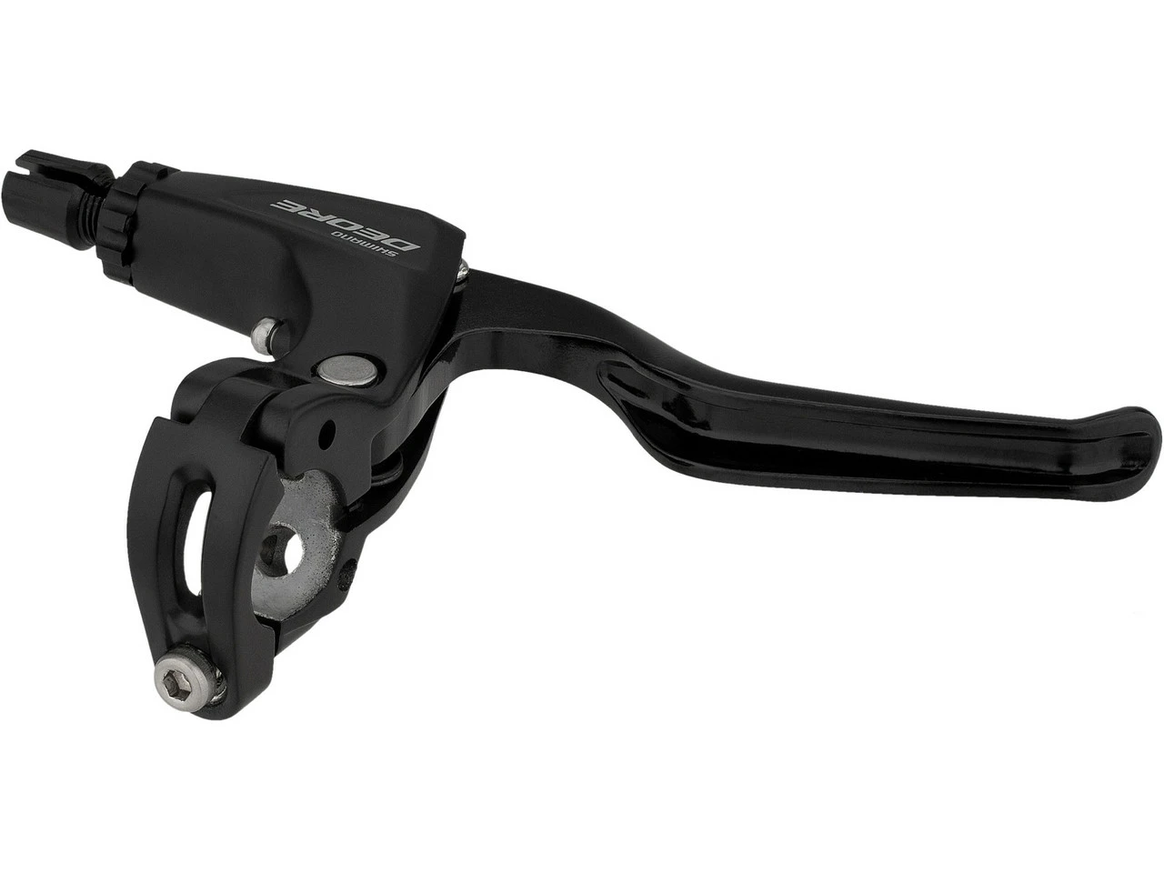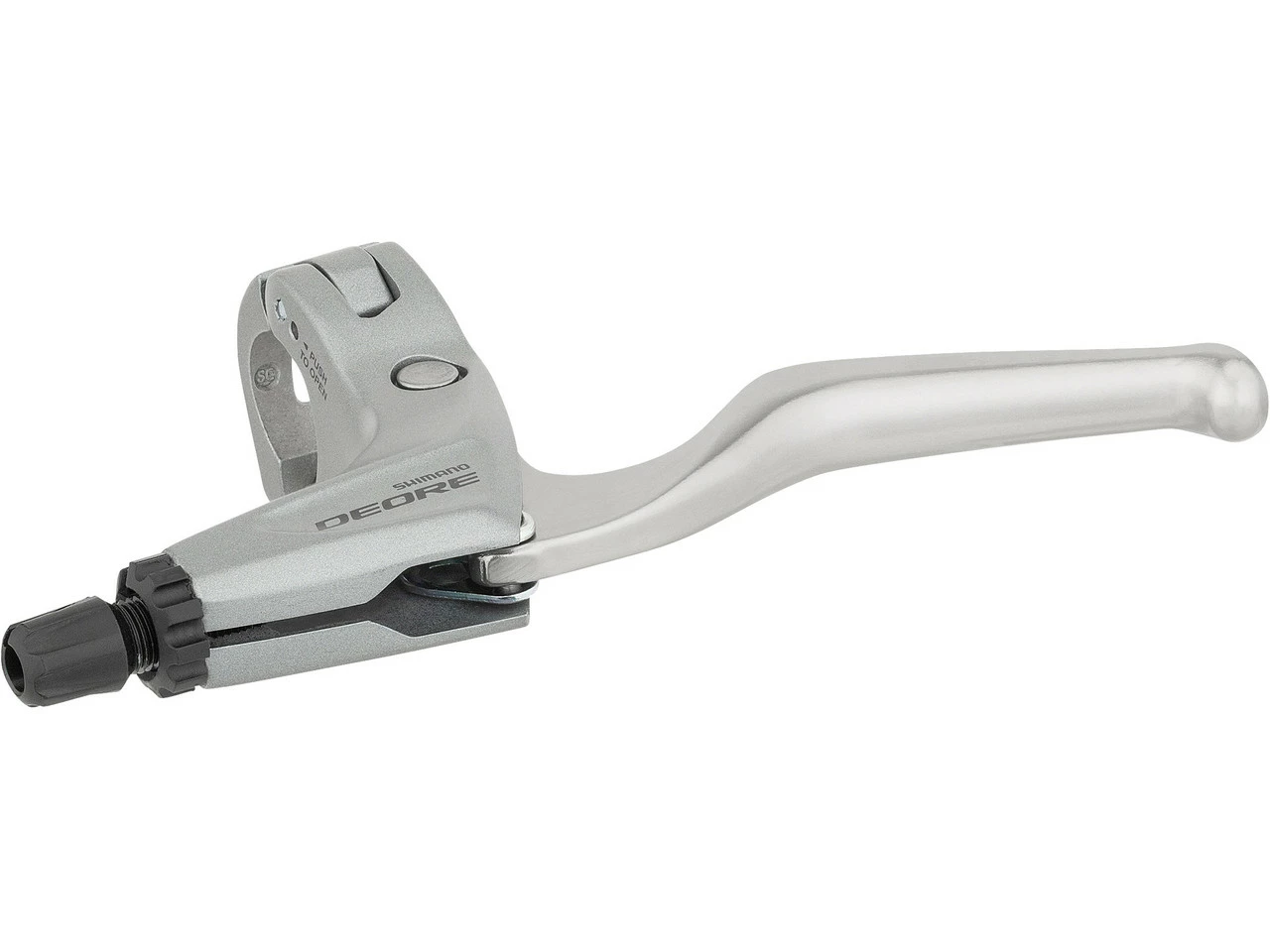 Der Shimano Deore BL-T611 Bremsgriff ist für den Einsatz am Trekking-Bike gedacht und verfügt über einen Hebel in klassischer 3-Finger-Länge. Er lässt sich mit V-Brakes und mechanischen Disc Bremsen verwenden. Seine leichtgängige Bedienung vermag in technischer Hinsicht ebenso zu überzeugen wie seine sportliche Erscheinung in Sachen Optik. Dank I-Spec (B) Kompatibilität kann man den Deore Bremsgriff im Übrigen mit einem passenden Schaltgriff kombinieren, um am Lenker Platz zu sparen. BL-T611 ist in Schwarz oder Silber, einzeln oder als Satz erhältlich.