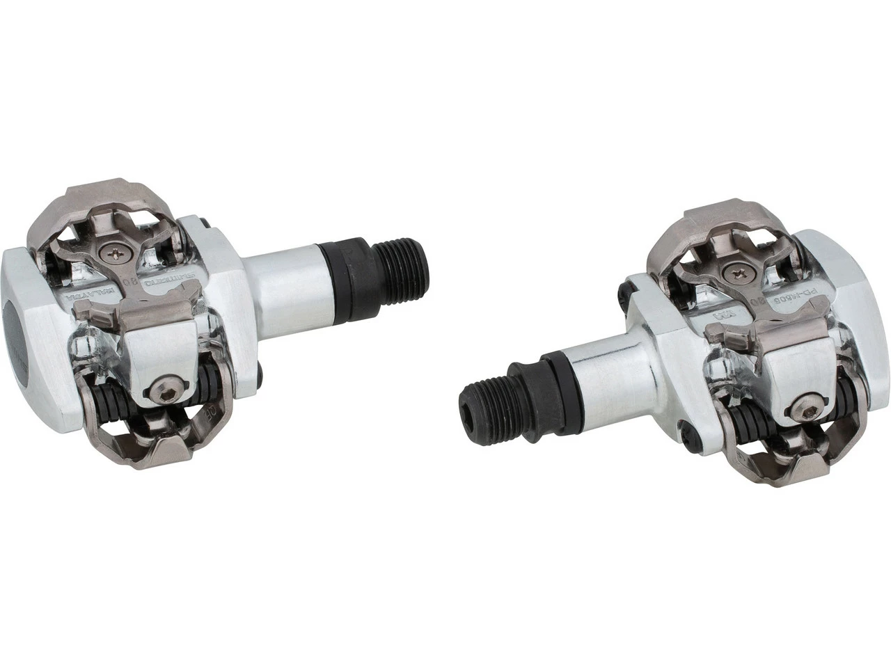 Die Shimano PD-M505 Pedale sind leistungsstarke SPD-Klickpedale für den Off-Road-Einsatz. Sie bestehen aus Aluminium und einer Stahl-Achse. Die Auslösehärte kann natürlich auch bei diesen Pedalen eingestellt werden.