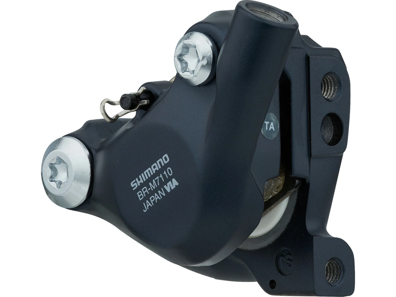 Der BR-M7110 ist ein Bremssattel aus der Shimano SLX-Serie, der per Flat Mount am Rahmen befestigt wird. Eine Verwendung am Vorderrad ist nicht möglich. Als 2-Kolben-Modell ist er für den Cross-Country-Einsatz vorgesehen. Der Flat-Mount-Standard ist aus dem Rennradbereich bekannt und bewährt und hat vor allem den Vorteil eines kompakten Designs, das sich angenehm in die Optik des Bikes einfügt. Die Bremsleistung steht der des Postmount-Bremssattels BR-M7100 in nichts nach, zumal Bremsscheiben bis 180 mm kompatibel sind. Der BR-M7110 besteht aus lackiertem Aluminium und hat einen geraden Leitungsanschluss; die Kolben sind aus hitzebeständiger Keramik. Er wird mit Resinbelägen ohne Kühlrippen geliefert, er kann aber auch mit Ice-Tech-Belägen für noch bessere Wärmeableitung kombiniert werden. Die One-Way-Bleeding-Technologie erleichtert den Entlüftungsvorgang.