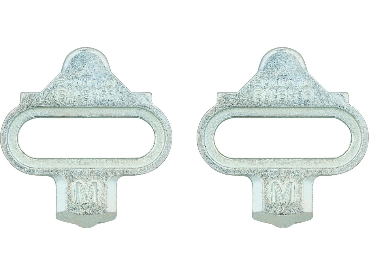 Die Shimano SPD Cleats SM-SH56 haben eine Mehrfachausstieg-Funktion, d. h. der Fuß kommt durch Drehen oder Kippen der Ferse in verschiedene Richtungen frei. Dank Kaltschmiedeverfahren und Hitzebehandlung erweisen sie sich als höchst belastbar und zuverlässig auch unter anspruchsvollsten Bedingungen. Natürlich hat Shimano die SM-SH56 perfekt auf die Zusammenarbeit mit SPD Schuhen abgestimmt. Die Schuhplatten sind paarweise für sich oder in Kombination mit einem Paar Gegenplatten erhältlich.