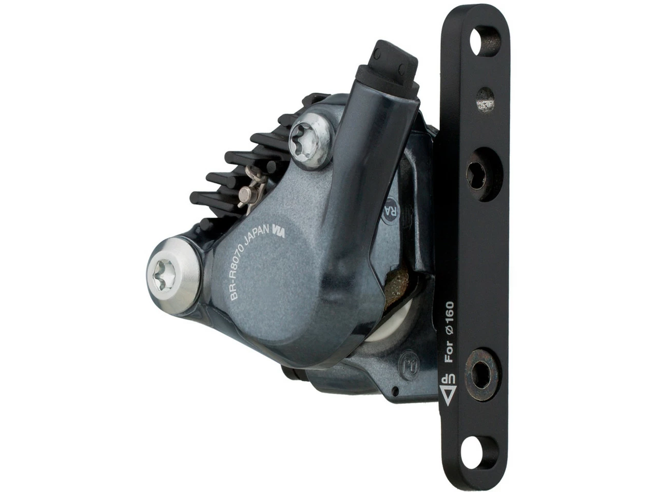 Spezifikationen:Serie:Ultegra R8000Einsatzbereich:Road, CyclocrossBremsentyp:hydraulisch, 2-KolbenBremsmedium:MineralölLeitung:SM-BH90-JK-SSR, SM-BH90-J-SSR (nicht im Lieferumfang)Technische Daten:Montage Bremssattel:Flat MountBremsbelag:Resin mit KühlrippenBauweise:2-teiligMaterial Kolben:KeramikMaterial Bremssattel:AluminiumLeitungsanschluss:geradeKompatibilität:Bremsscheibe:140 mm, 160 mm, 180 mm (empfohlen: SM-RT800)Bremsbeläge:organisch und gesintert; mit schmaler Belagsform; Standard- und Ice-Tech-BremsbelägeEmpfohlener Bremsgriff:ST-R8070, ST-R8020, auch kompatibel mit ST-R9120, ST-R9170, ST-R8025, ST-R7020, ST-R7025, ST-RX810, ST-RX810-LA, ST-RX810-LE, BL-RX810-L, ST-RX815, ST-RX600, BL-RX600-L, ST-RX400, ST-4720, ST-4725, ST-R9180, ST-R785, ST-RS685, ST-RS505 und Zusatzbremshebel BL-RX812Features:mehr Kontrolle unter allen BedingungenFlat Mount-Design für nahtlose Integration in das Aero-Profil des Bikeszwei Kolben aus KeramikeloxiertStahl-Befestigungsschrauben (4 mm)Technologien:One-Way-Entlüftung