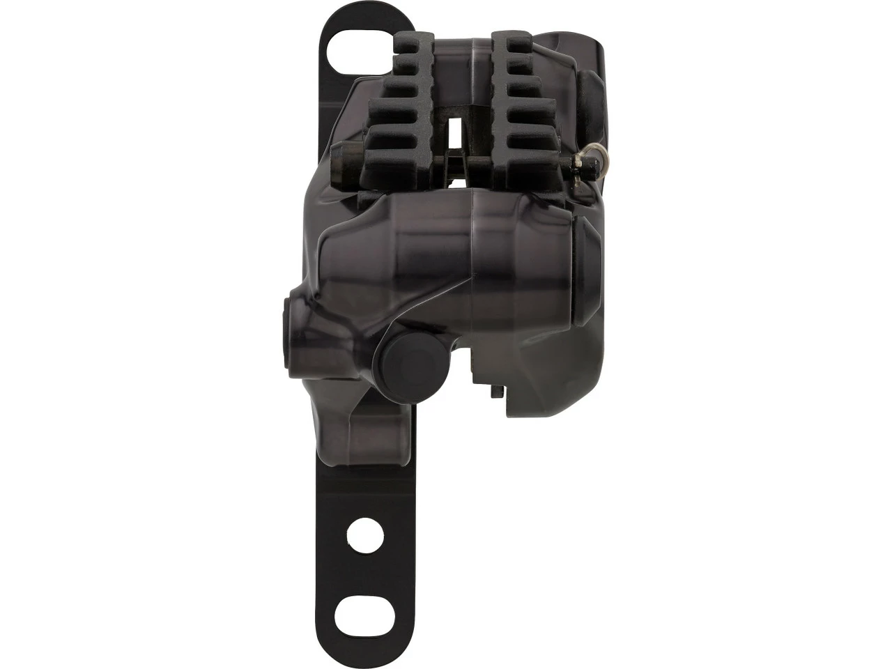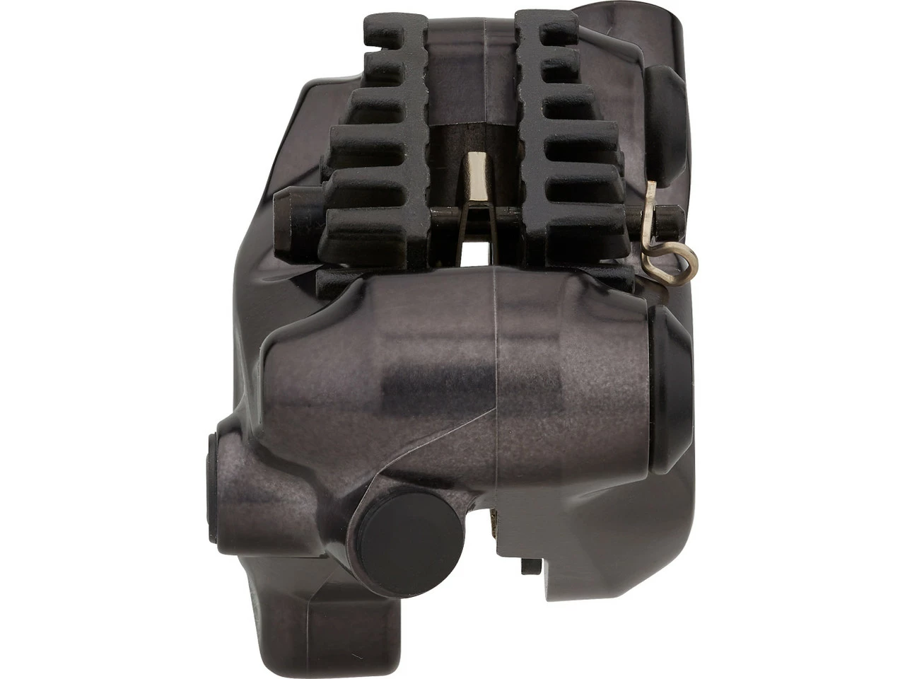 Bei dem Shimano Flat-Mount-Bremssattel BR-R8170 aus der Rennradgruppe Ultegra haben die Bremsbeläge haben mehr Freiraum als beim Vorgängermodell, wodurch ein Schleifen der Bremsscheibe vermieden und die Geräuschentwicklung reduziert wird. Die Bremsleistung der zwei Kunststoffkolben ist auf den Wettkampfeinsatz abgestimmt, eignet sich aber genauso für Freizeit- und Trainingsfahrten. Außerdem punktet BR-R8170 dank One-Way-Bleeding-Technologie mit einem einfachen Entlüftungsvorgang. Der zweiteilig konstruierte Bremssattel besteht aus leichtem Aluminium und wird mit Ice-Tech-Resinbelägen geliefert, die aufgrund ihrer Kühlrippen besonders gute Hitzeableitung gewährleisten. Du kannst ihn aber auch mit herkömmlichen Pads fahren.