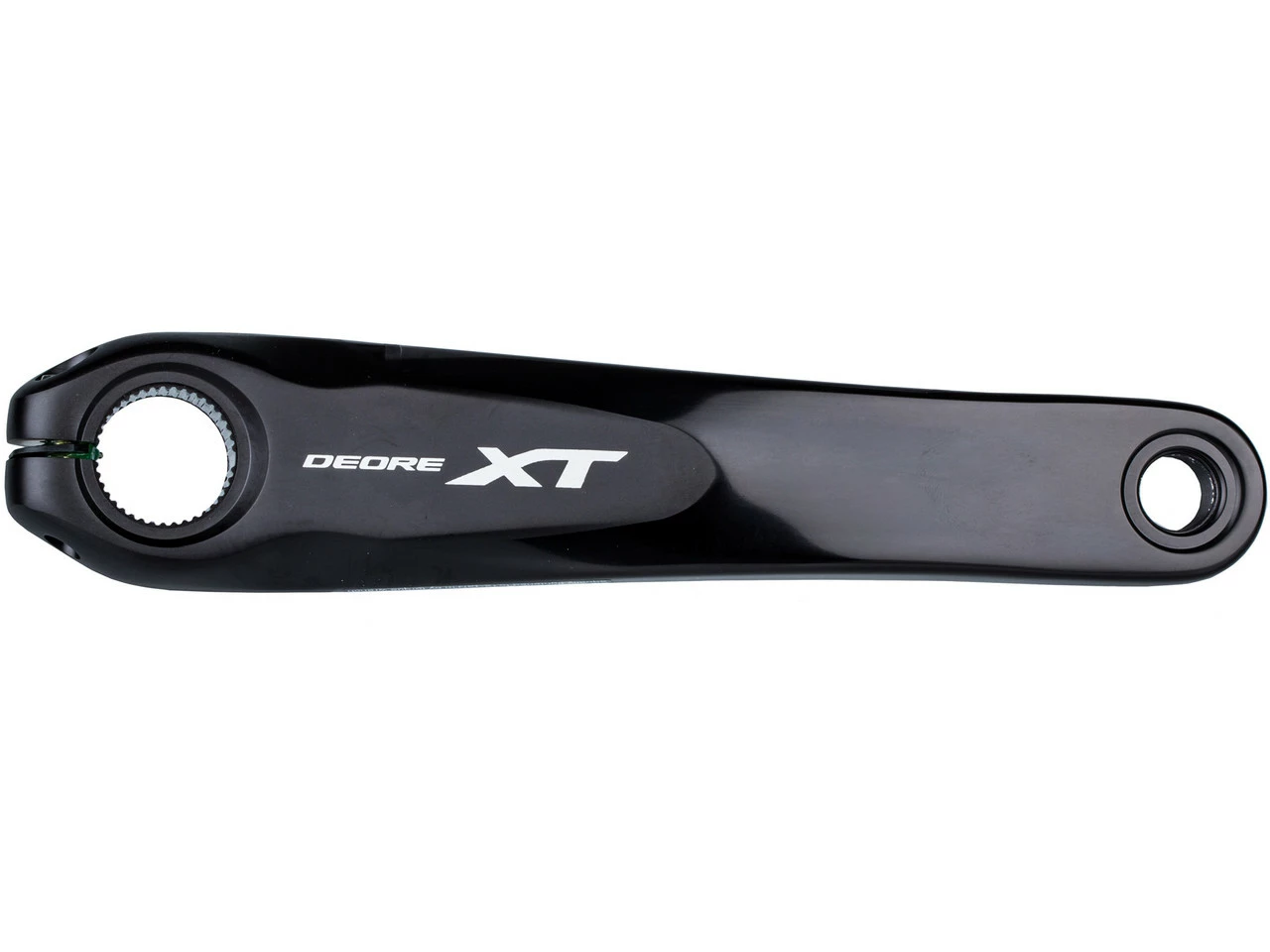 Die Shimano XT FC-M8000-B2 Kurbelgarnitur ist eine Variante der FC-M8000-2 mit 3 mm weiter außen liegender Kettenlinie. Sie kann daher nur in Rahmen mit 148 mm Einbaubreite hinten verwendet werden. Die Aluminium-Kurbel ist mit zwei Kettenblättern in der Abstufung 24-34 oder 26-36 Zähne bestückt. Sie wurde im Hinblick auf Übersetzung und gleichmäßigen Tretrhythmus optimal abgestimmt (Dyna-Sys11 Technologie), wobei das seit vielen Jahren bewährte Hollowtech II Design mit fest verbundener 24 mm Achse für ein ausgewogenes Verhältnis von Steifigkeit und Gewicht sorgt.