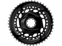 Das Force 2×12-fach-Set von SRAM beinhaltet zwei Kettenblätter in einteiligem Design, die per Direct Mount an Road- oder Gravelkurbeln befestigt werden. Die X-Range-Abstufung von 13 Zähnen ermöglicht harmonische Gangsprünge, während die Schaltvorgänge selbst schnell und akkurat vonstattengehen.