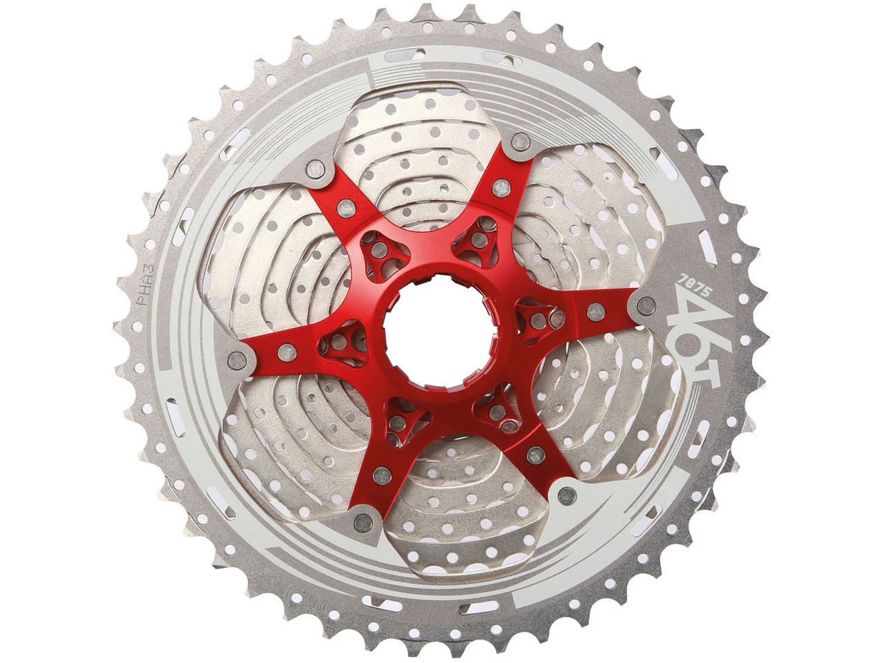 Spezifikationen:Einsatzbereich:Cross Country, All Mountain, EnduroSchaltstufen:11-fachAbstufungen:11-40, 11-42, 11-46Material Ritzel:Stahl (Hi-Tensile), Aluminium (7075)Freilaufkompatibilität:Shimano MTBTechnische Daten:Serie:MX 11sSpider / Ritzelträger:2 (Aluminium)Empfohlene Kette:11-fachFeatures:Wide Ratio KassetteRitzel 1 bis 10 aus Hi-Tensile-Stahl, Ritzel 11 aus eloxiertem AluminiumFluid Drive Plus TechnologieLight Weight Holes Design6 Ritzel auf 2 Trägern (11-40, 11-42) oder 7 Ritzel auf 2 Trägern (11-46)Spider, Spacer und Verschlussring rot eloxiertAusführungen:11-40: