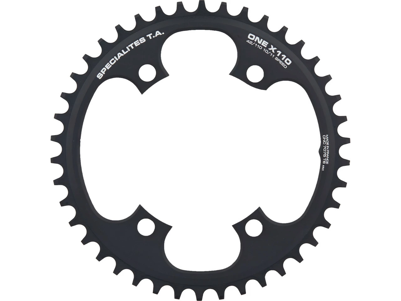 Das TA ONE X110 ist ein Kettenblatt mit speziellem Zahnprofil, damit die Kette auch ohne Kettenführung am Platz bleibt. Erlaubt die Umrüstung von 3- und 2-fach auf 1 x 10/11/12-fach unter Verzicht auf den Umwerfer.