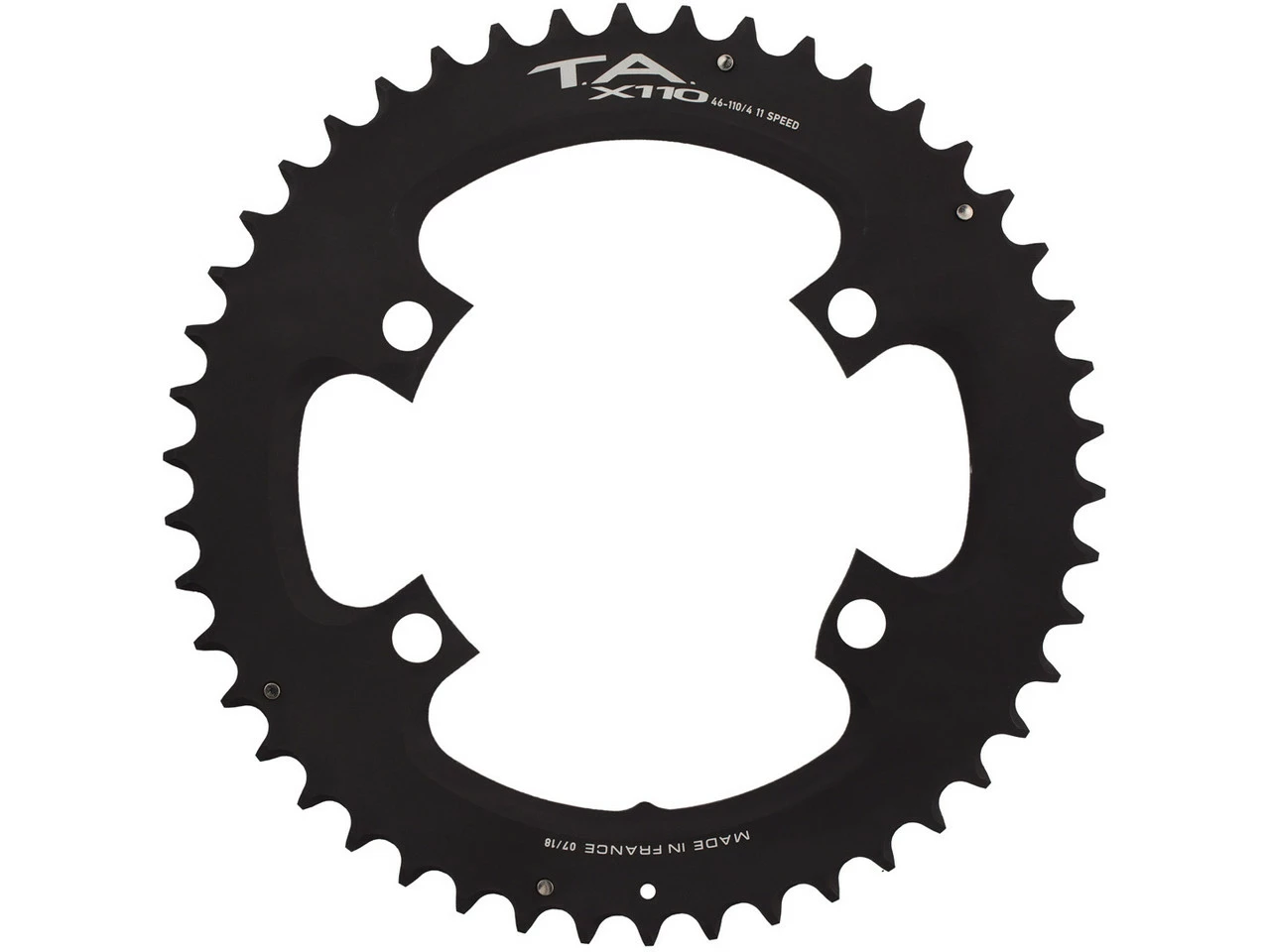 Das TA Kettenblatt X110 wird zu 100 % aus Aluminium 7075-T6 CNC-gefertigt und zeichnet sich durch sein geringes Gewicht, seine Festigkeit und seine lange Lebensdauer aus. Es ist kompatibel mit 11-fach Antrieben und den Dura Ace R9100, Ultegra R8000 sowie weiteren 4-Arm-Kurbeln mit 110 mm Lochkreis von Shimano. Dank der großen Zähneauswahl wirst Du leicht das passende X110 Kettenblatt für Dich finden.