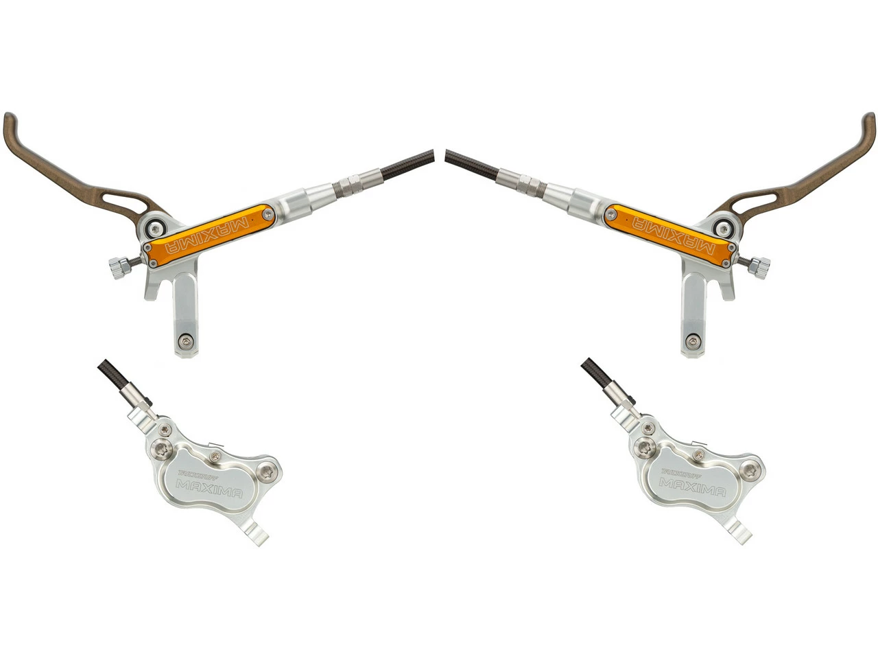 Ausgehend von der Trickstuff Direttissima verfügt die Maxima über höhere mechanische und hydraulische Übersetzungen, eine höhere Wärmekapazität, größere Belagsfläche, längere Fingerhebel mit progressiverer Übersetzung und mehr Masse am Bremssattel für höhere Steifigkeit.