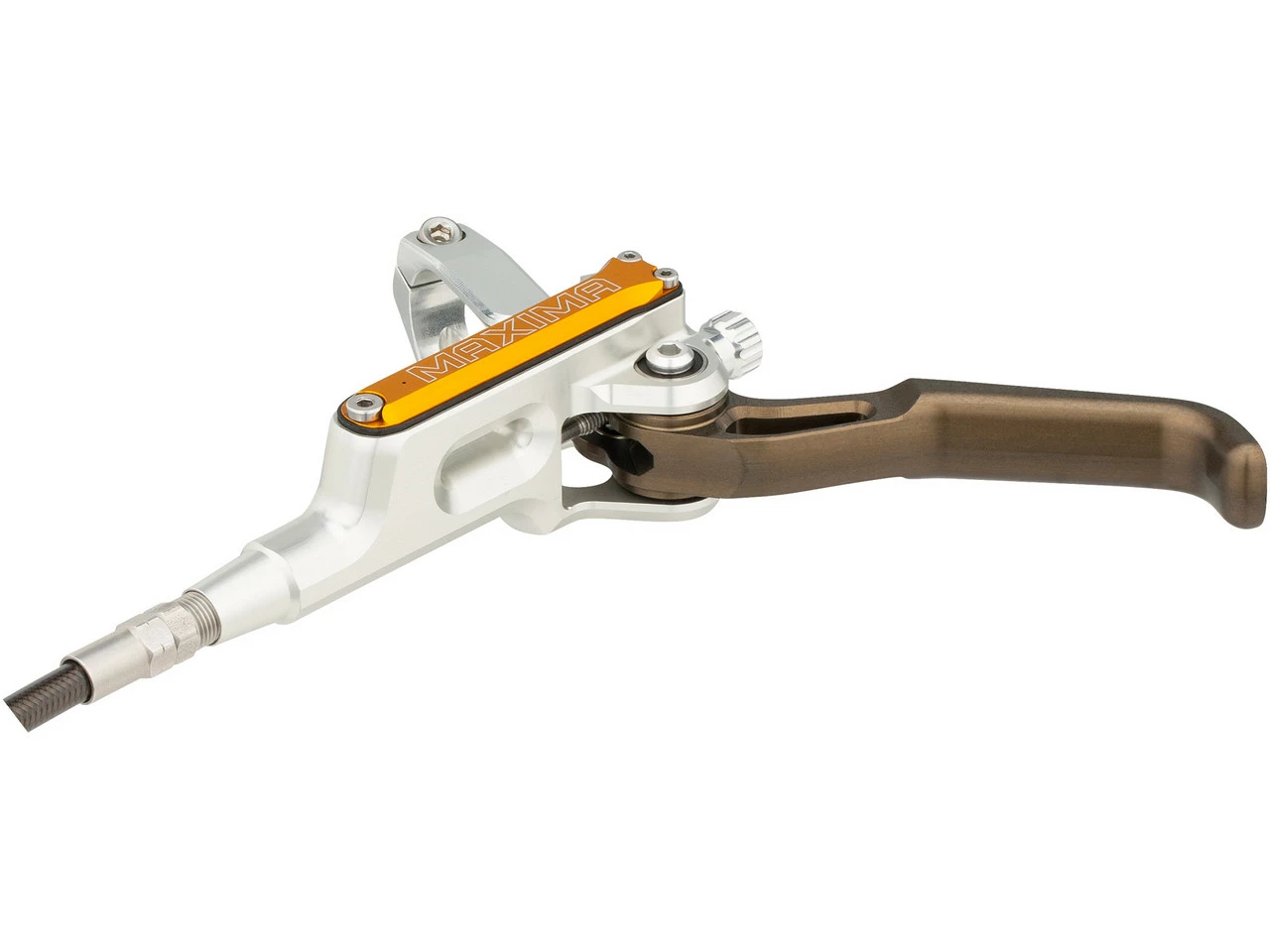 Spezifikationen:Serie:MaximaEinsatzbereich:Cross Country, All Mountain, Enduro, Trail, DownhillBremsentyp:hydraulisch, 4-KolbenBremsmedium:Mineralöl (Bionol)Leitung:StahlflexLeitungslänge VR/HR:900 mm / 1700 mmTechnische Daten Bremssattel:Montage Bremssattel:Postmount (IS über Adapter)Kolben:4Bremsbelag:POWER organischMaterial Bremssattel:AluminiumLeitungsanschluss:Goodridge FittingTechnische Daten Bremsgriff:Hebellänge:2-FingerEinstelloptionen:GriffweiteneinstellungMontage:Klemmschelle (geteilt)Bauart:rechts / links (seitenspezifisch)Material Bremshebel:AluminiumMaterial Bremsgriffgehäuse:AluminiumLeitungsanschluss:Goodridge FittingFeatures:herausragende Optik und HaptikVerwendung von CNC-gefrästem Flugzeugaluminium 7075 T6bietet einen klar definierten Druckpunkt9 mm Geberkolben16 mm und 17 mm NehmerkolbenVerwendung von hochwertigem Mineralöl (organisches Bionol)werkzeuglose Hebelweitenverstellungoptional sind verschiedene Schalthebel-Interfaces für SRAM und Shimano (I-Spec 1, 2 und EVO) erhältlichHerstellernummer:silber-orange:MXA silber/orange VR 900 mm HR 1700 mm