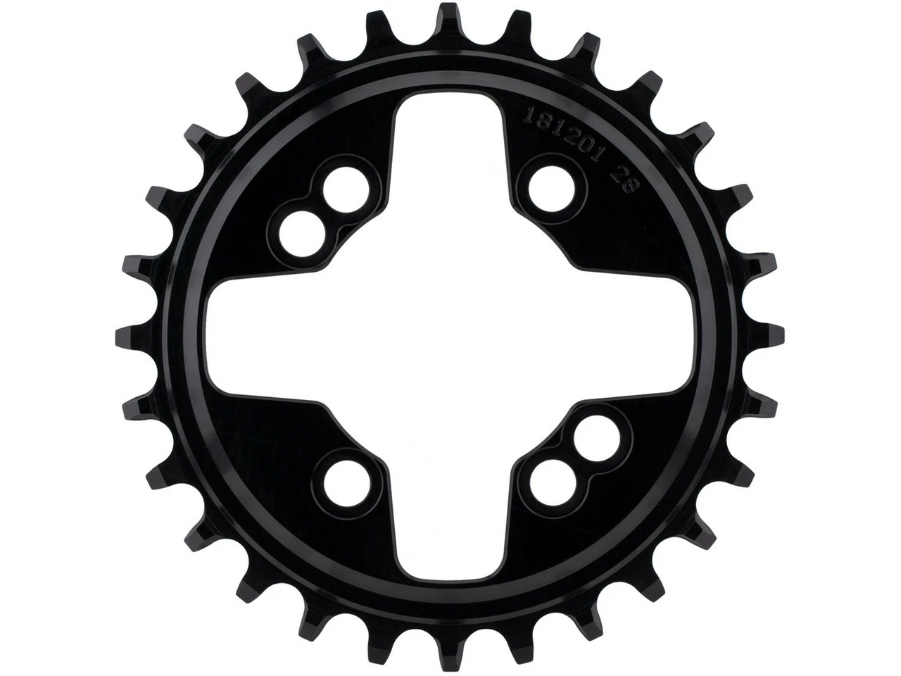 Spezifikationen:Einsatzbereich:Cross Country, All Mountain, EnduroBefestigung:64 mm Lochkreis, 4-Arm, 64 mm Lochkreis, 4-Arm asymmetrischZähne:26 Z, 28 ZSchaltstufen:1×9-fach, 1×10-fach, 1×11-fach, 1×12-fachTechnische Daten:Material:Aluminium (7075-T6)Kettenlinie:46 mm (an 3-fach Kurbel), 48 mm (an 2-fach Kurbel und M8000, M7000), 50 mm (M8000, M7000 Boost)Kompatibilität:alle Kurbeln mit 104/64 mm LochkreisShimano XT M8000 11-fach KurbelShimano SLX M7000 11-fach Kurbelalle 9-, 10- und 11-fach-KettenSRAM Eagle, KMC, Connex und Wippermann 12-fach-Kettenfür 9-fach Schaltung wird 10-fach Kette empfohlenOriginal-Hardware zur Montage des Kettenblatts verwendenFeatures:Single Kettenblatt mit Wolf Tooth Wide-Narrow-Designspezielle, universell passende LochungMade in the USA