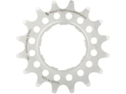 Das Edelstahl Singlespeed Ritzel von Wolf Tooth Components zeichnet sich durch seine besondere Haltbarkeit und große Zähne für einen perfekten Kettenrückhalt aus.