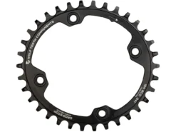 Spezifikationen:Einsatzbereich:Cross Country, All MountainBefestigung:104 mm Lochkreis, 4-ArmZähne:32 Z, 34 Z, 36 ZSchaltstufen:1×9-fach, 1×10-fach, ,1×11-fach, 1×12-fachAusführung:Oval 10 %Technische Daten:Kettenlinie:48 mm (3-fach Kurbel), 49 mm (2-fach)Material:Aluminium (7075-T6)Kompatibilität:Kurbeln mit 104 mm Lochkreisdurchmesseralle 9-, 10- und 11-fach-KettenSRAM Eagle, KMC, Connex und Wippermann 12-fach-Kettenfür 9-fach Schaltung wird 10-fach Kette empfohlen34 Z und 36 Z sind QUARQ kompatibel (32 Z bei älteren QUARQ Kurbeln nur mit Abfeilen)10 mm lange Kettenblattschrauben erforderlichFeatures:Wolf Tooth PowerTrac-Elliptical- und Wide-Narrow-Design – erhöhte und gleichmäßigere Trittleistung, mehr Effizienz in der Erholungszone und mehr Traktion dank gleichbleibenden Drehmoments