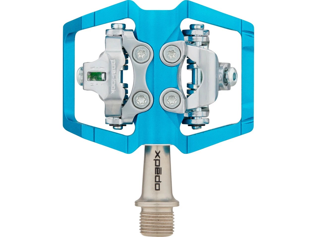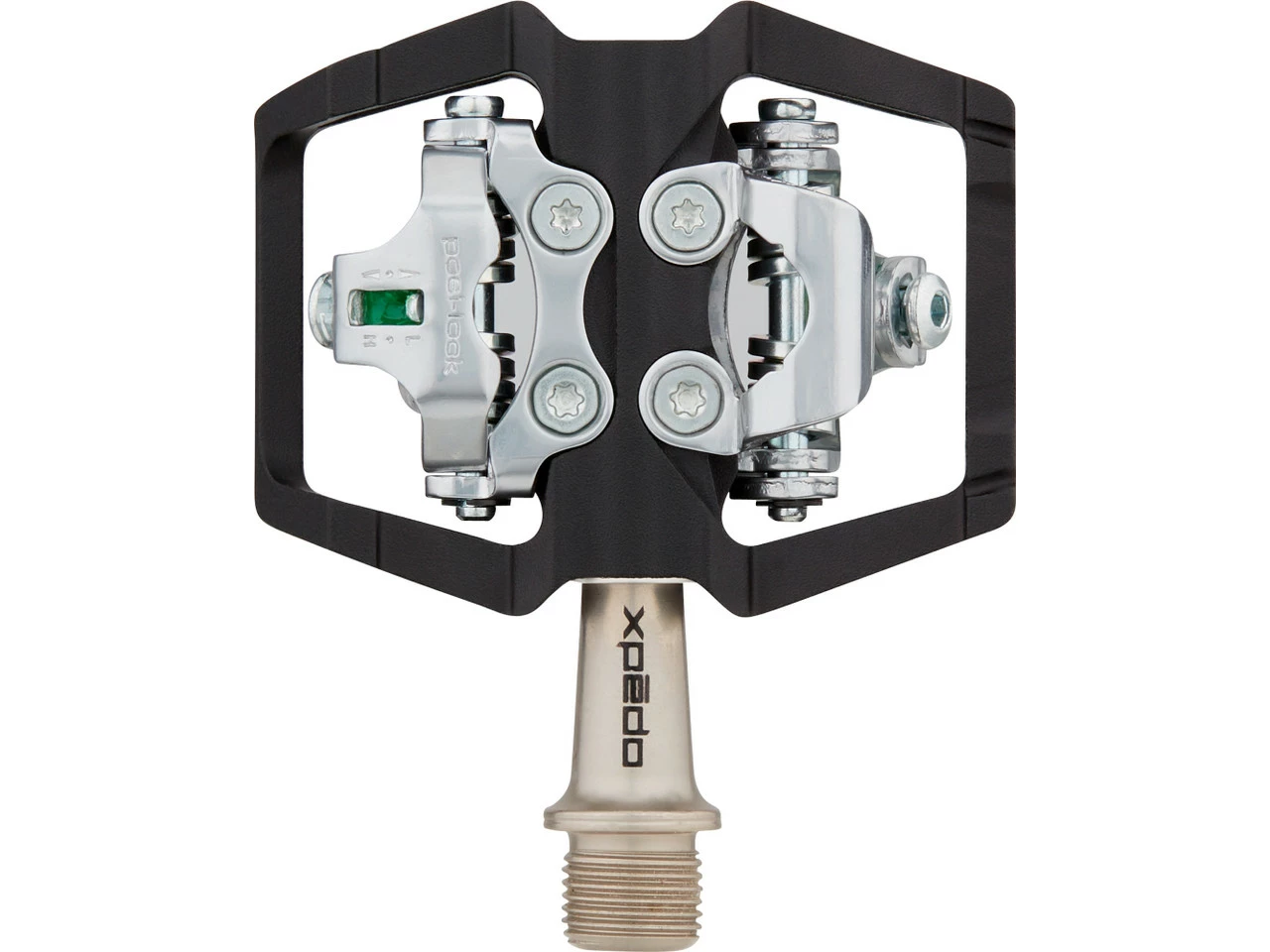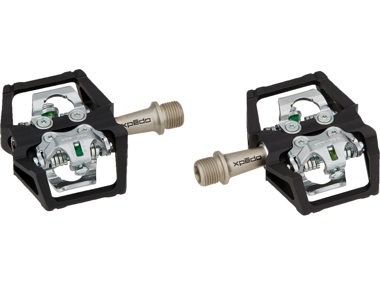 Spezifikationen:Einsatzbereich:MTBAusführung:Klickpedale mit PlattformTechnische Daten:Material Pedalkörper:AluminiumMaterial Achse:CrMo (Hohlachse)Größe:61,2 x 76 x 18,6 mmGewinde:9/16“Lagerung:Cartridge 3-fach, gedichtetBindung:doppelseitigBewegungsfreiheit:6°Auslösekraft:einstellbarKompatibilität:Shimano, SPDSonstiges:neue, offene Bauweise, selbstreinigendHerstellernummern:schwarz:XMF09AC blackgrau:XMF09AC greyblau:XMF09AC bluerosa:XMF09AC pinkLieferumfang:1 Paar Klickpedale Xpedo Baldwininkl. Cleats